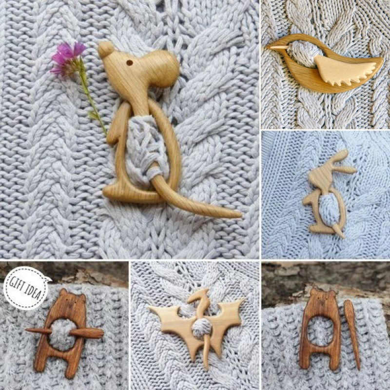开衫毛衣别针围巾披肩固定衣服装饰大衣针扣胸花木质动物胸针配饰