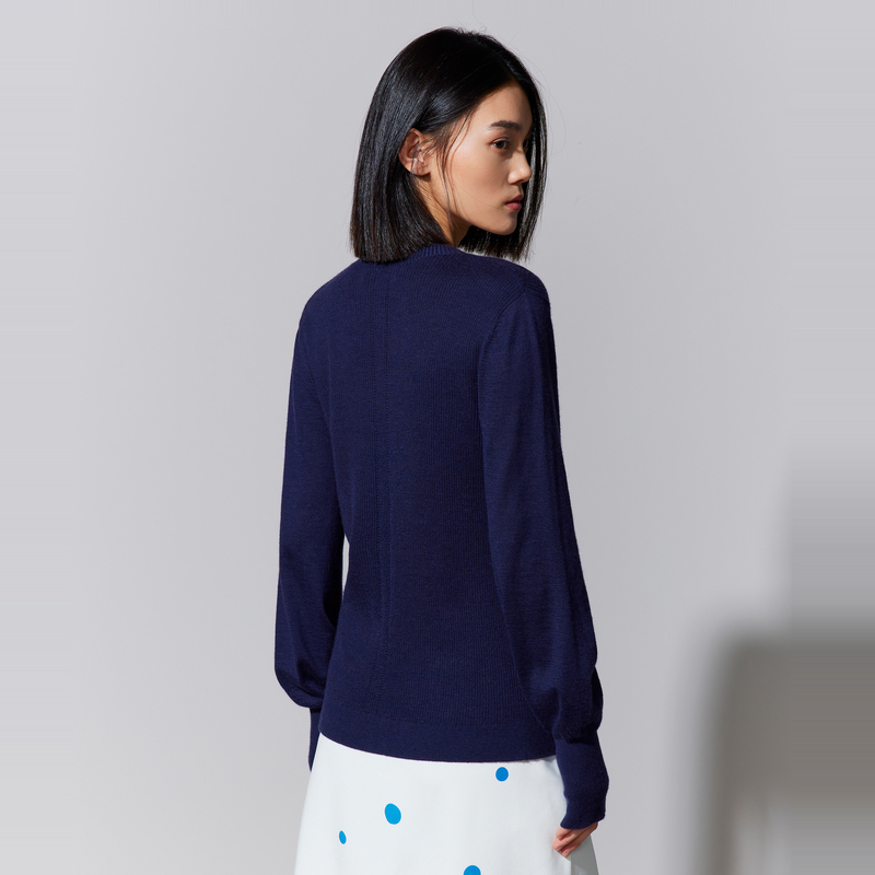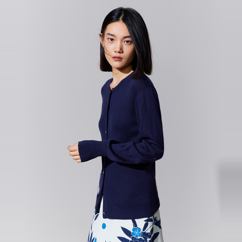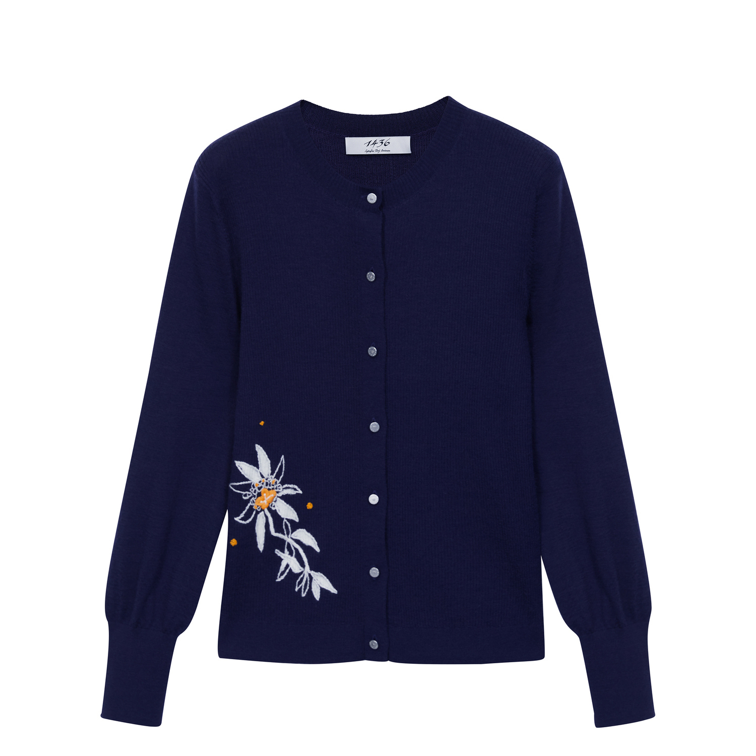 1436精纺圆领抽条提花山羊绒纱线手工刺绣女开衫