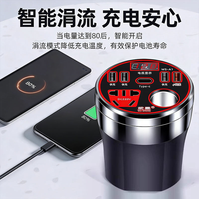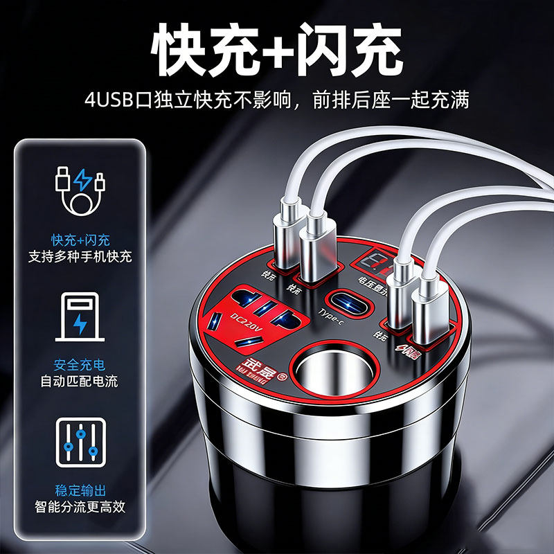 车载充电器超级快充逆变器12v转220v逆变转换器点烟器转换插头24v
