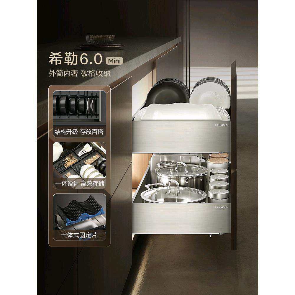 HIGOLD/悍高希勒6.0mini厨房橱柜拉篮抽屉式304不锈钢碗碟拉篮