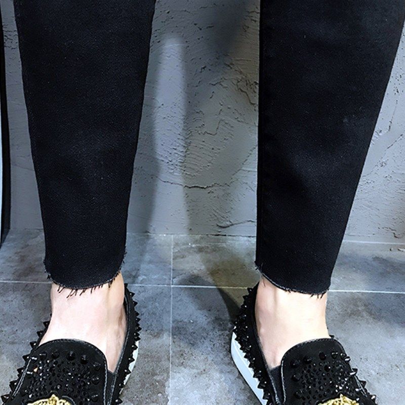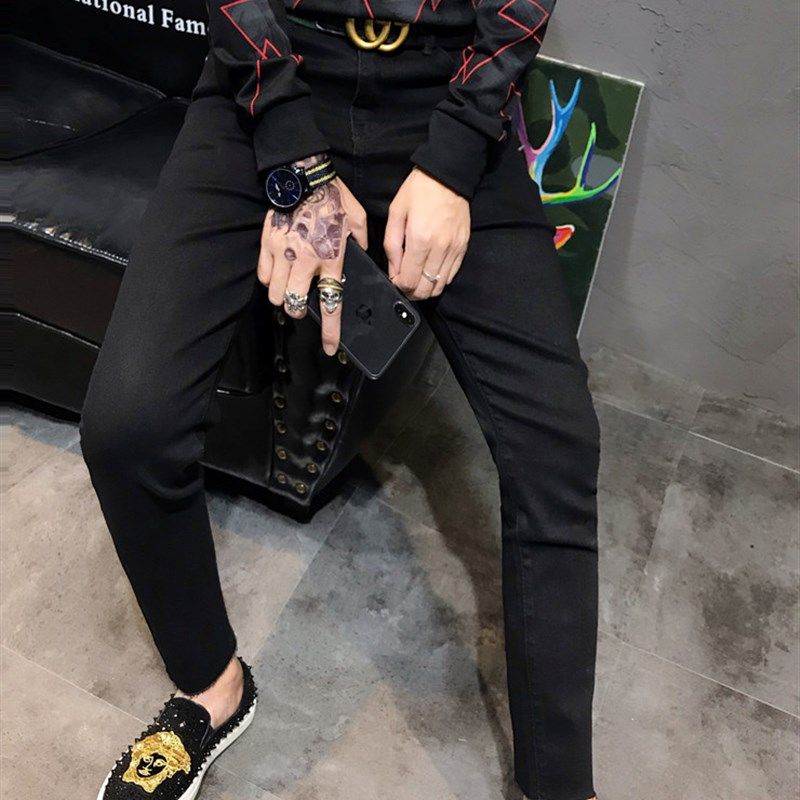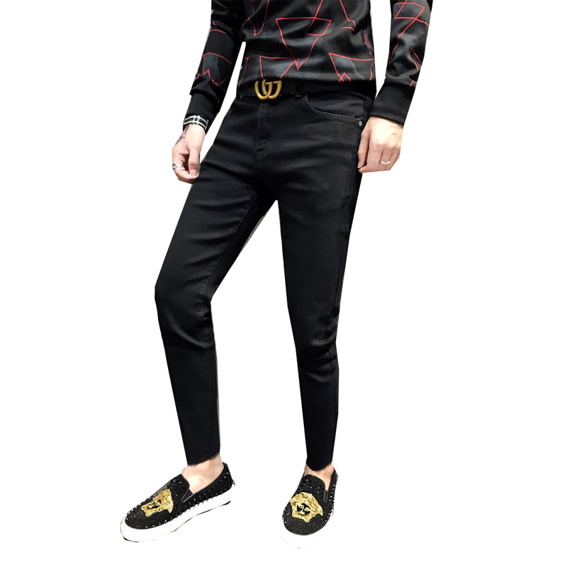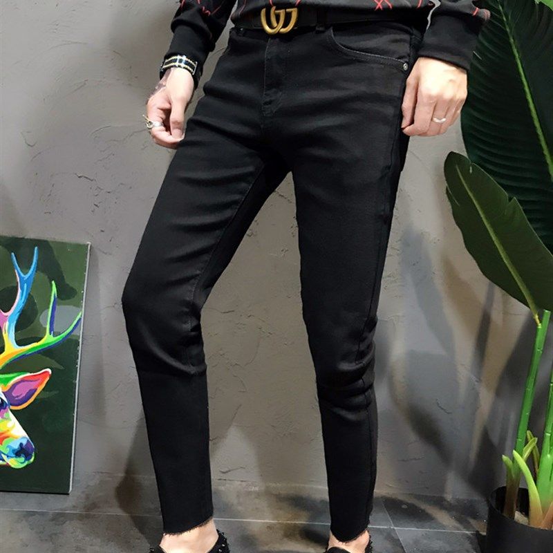 牛仔裤男潮牌修身烟管裤子2023秋冬时尚弹力潮男士韩版黑色九分裤