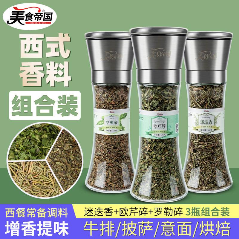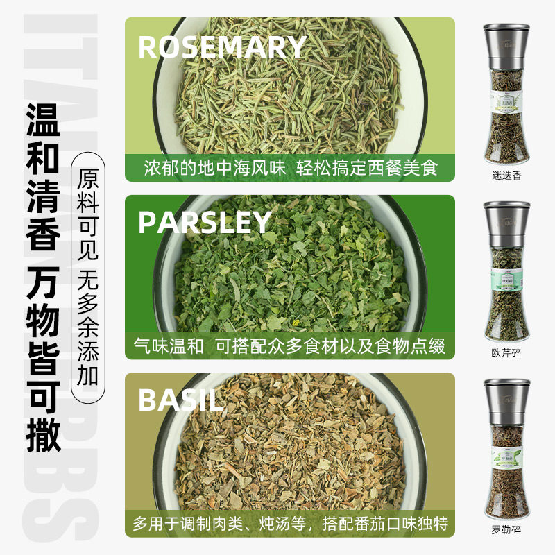 美食帝国迷迭香欧芹罗勒西餐牛排意面调味料轻食水煮菜自带研磨器