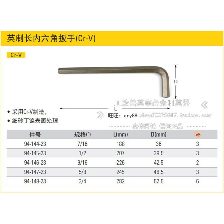 STANLEY/史丹利 英制长内六角扳手 94-144-23/145/146/147/148