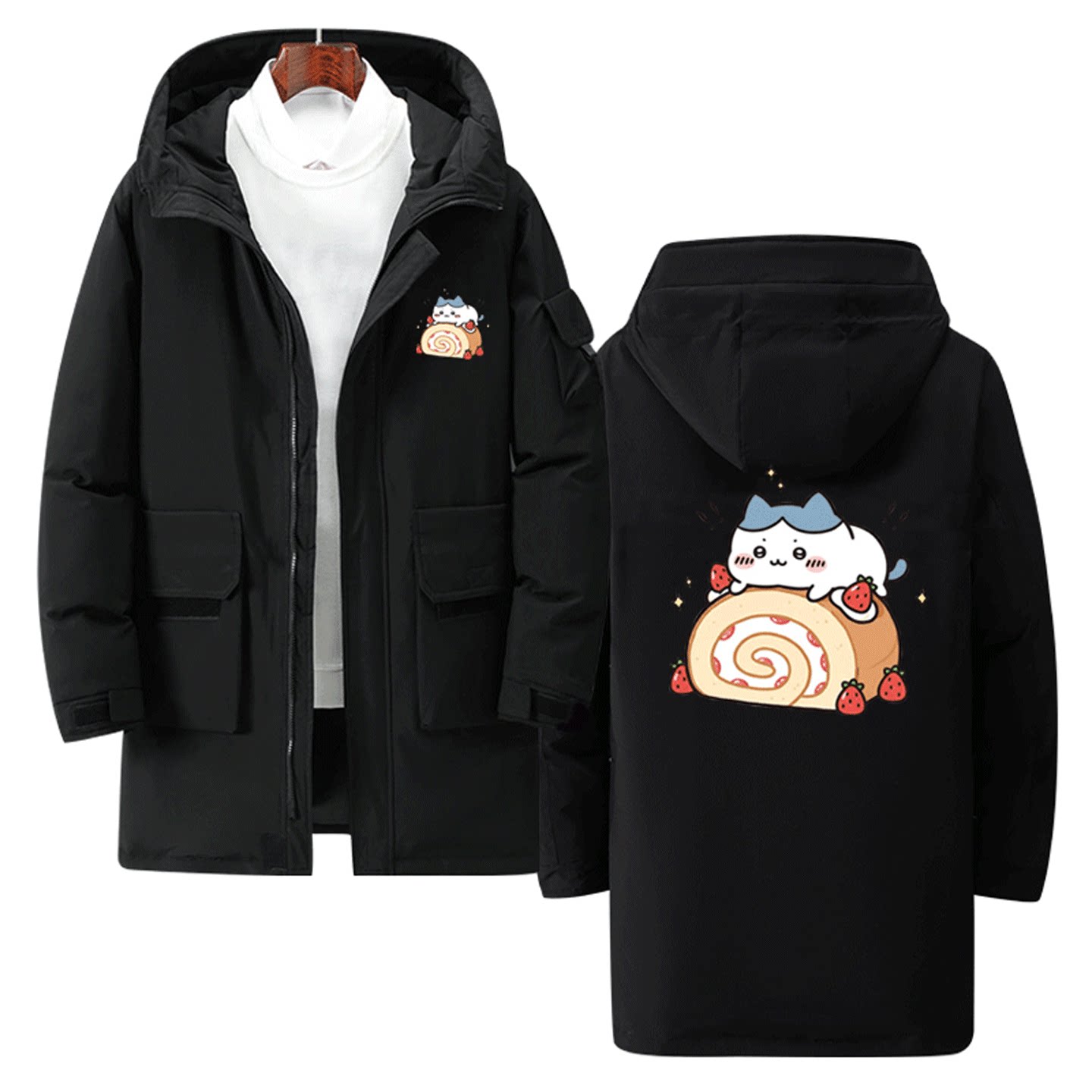 Chiikawa吉伊咔哇卡通可爱男女可定制中长款羽绒服乌萨奇小八联名