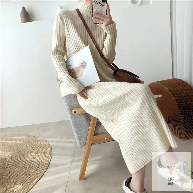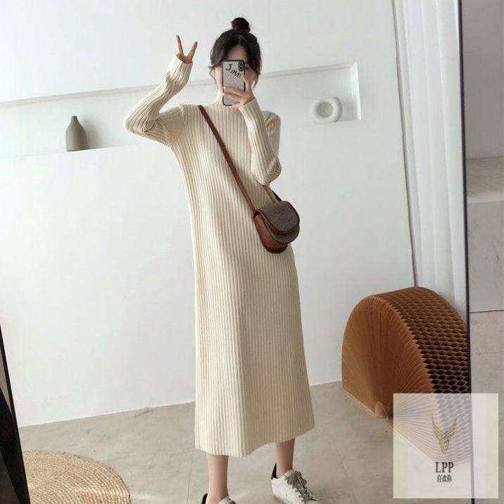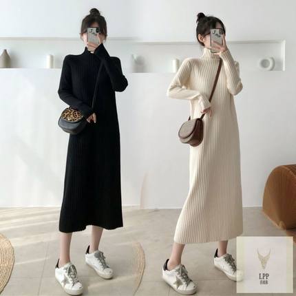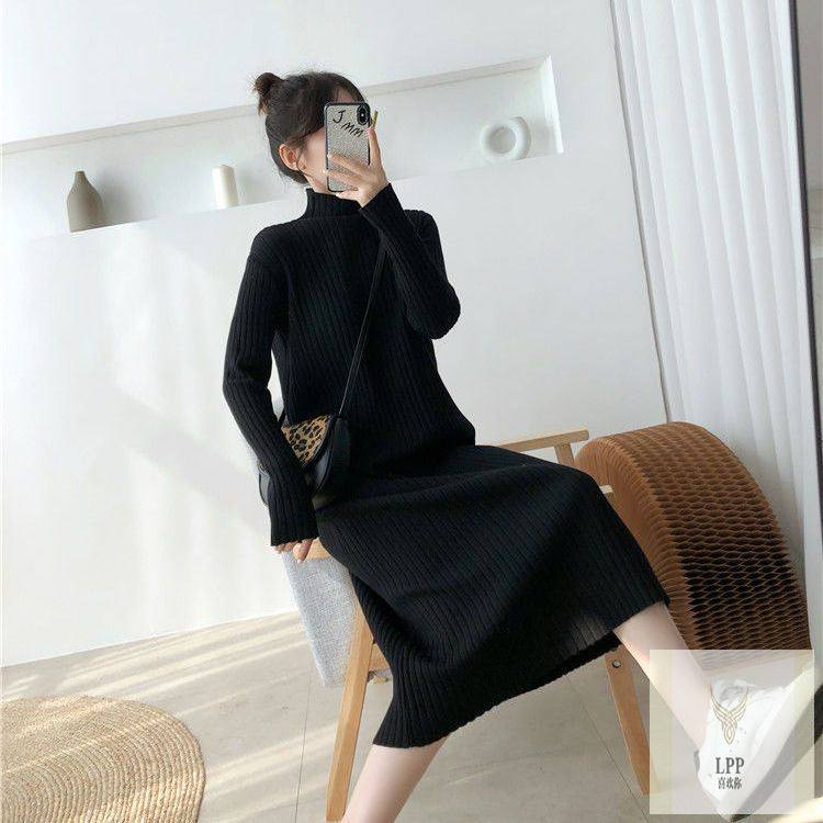 清仓针织打底连衣裙女内搭秋冬季2024高领中长款气质毛衣长裙过膝