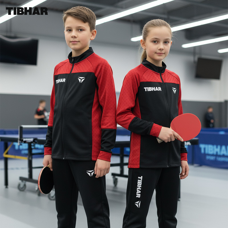 TIBHAR挺拔儿童乒乓球运动服新款长袖球衣套装速干透气训练比赛服