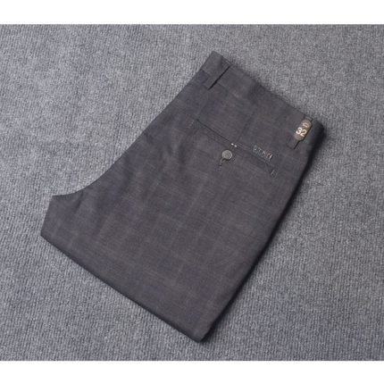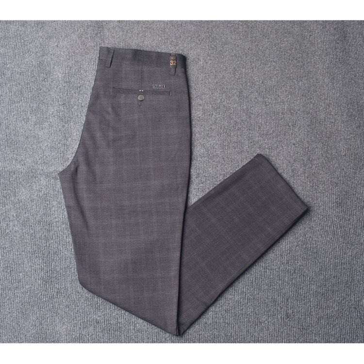 欧普鲨夏季商务男士休闲裤修身直筒格子长裤潮流薄款弹力男裤子