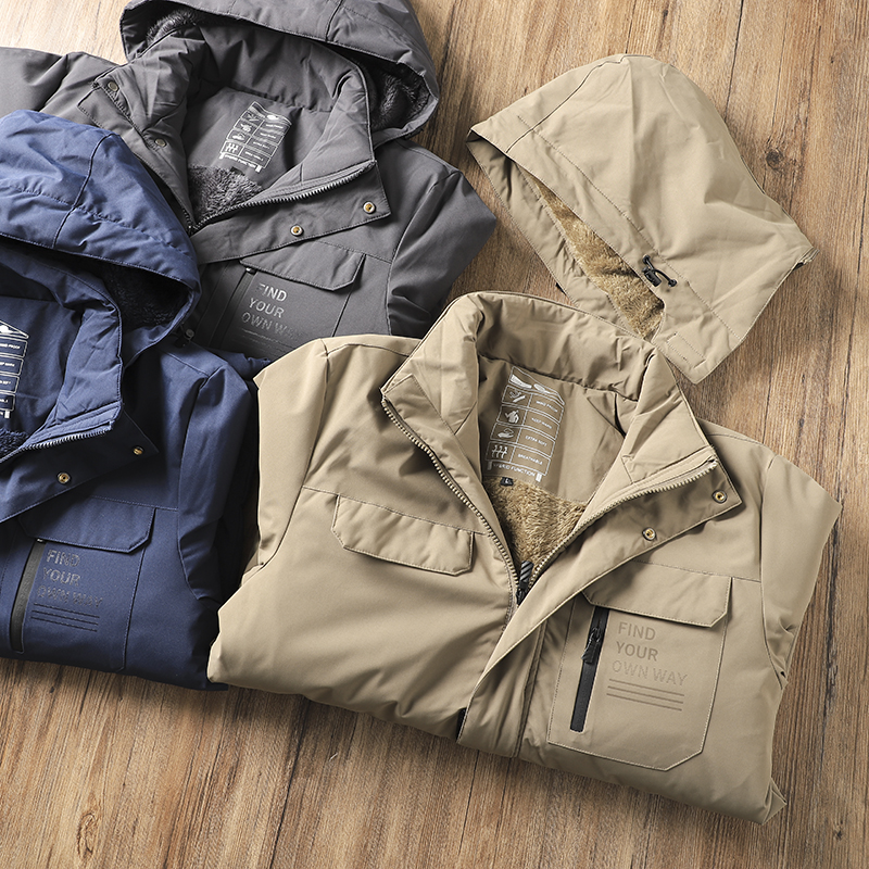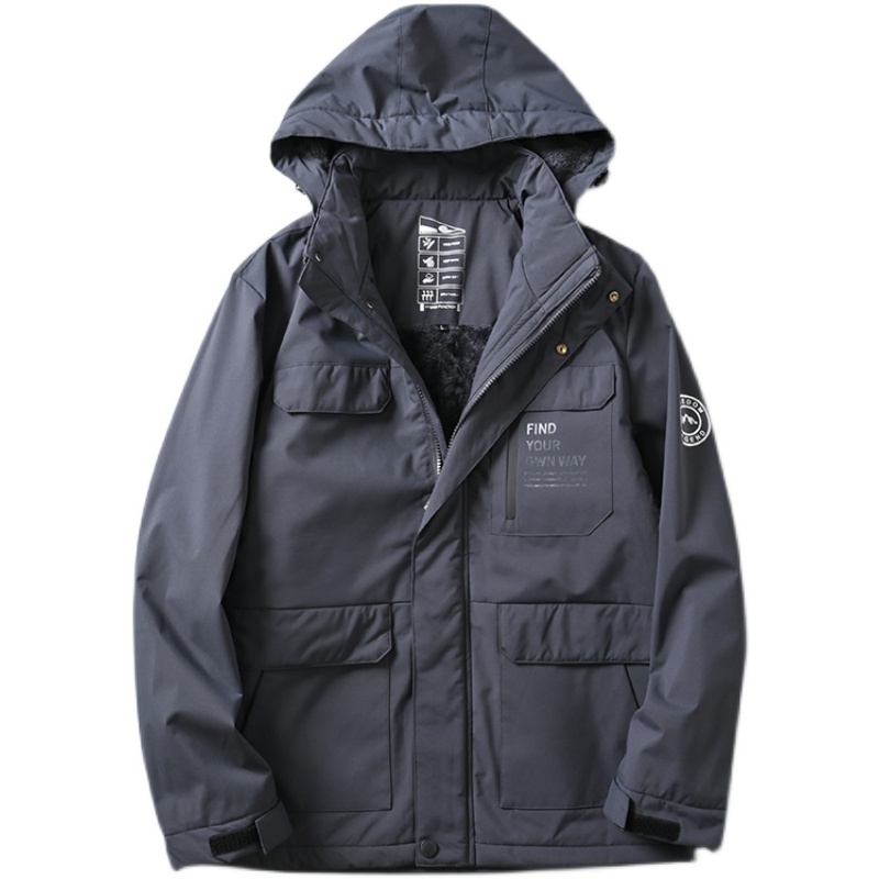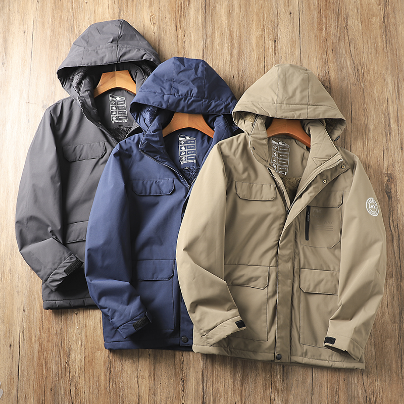 一件过冬~加绒加厚~冬季男士户外防风防水连帽羊羔绒工装棉衣棉服