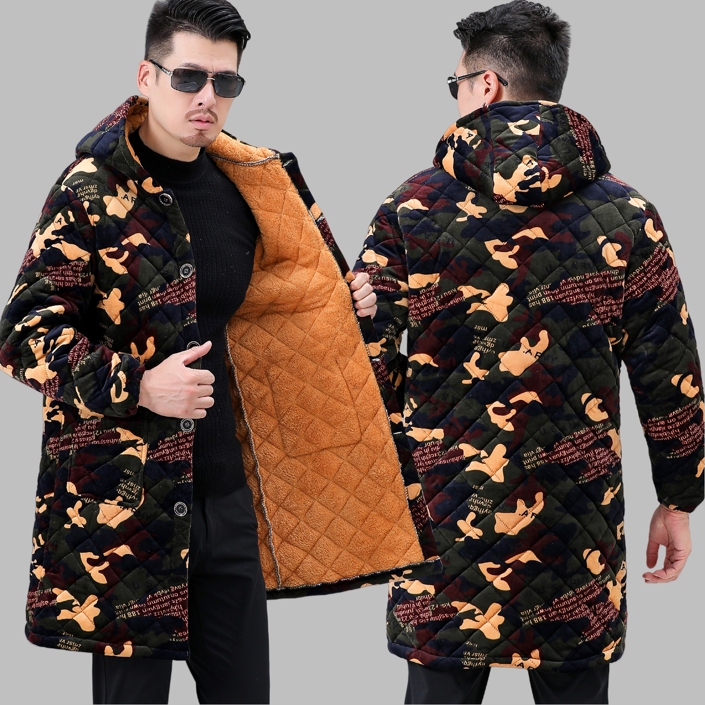 男士新款罩衣冬季加绒加厚棉衣外套保暖防寒中长款防污耐脏干活穿
