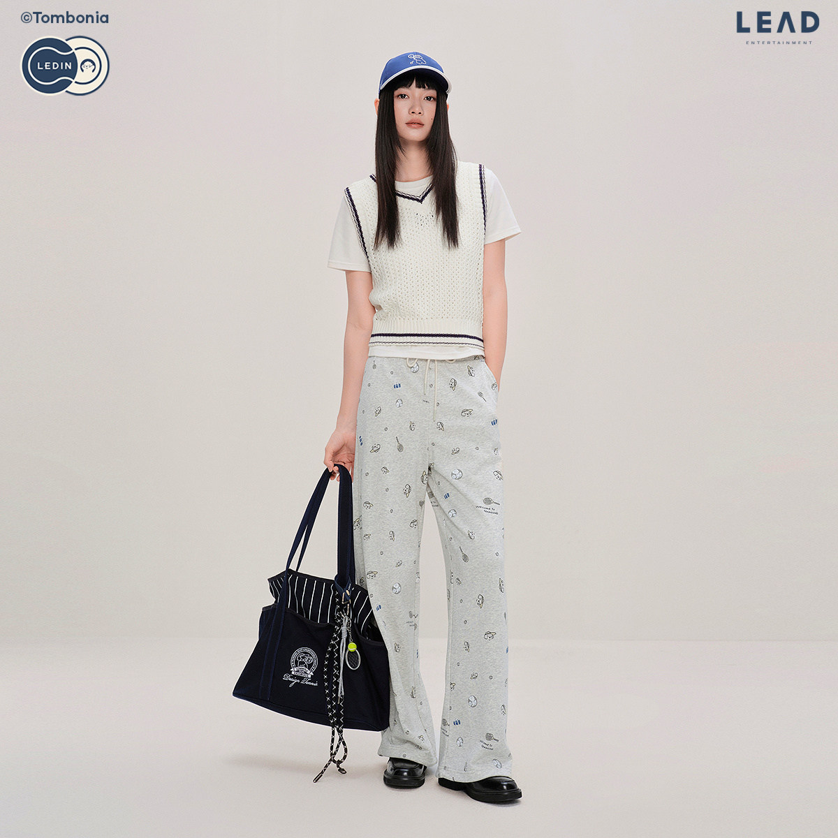 【tombonia联名】乐町商场同款满印宽松直筒针织休闲裤C2GHF3305