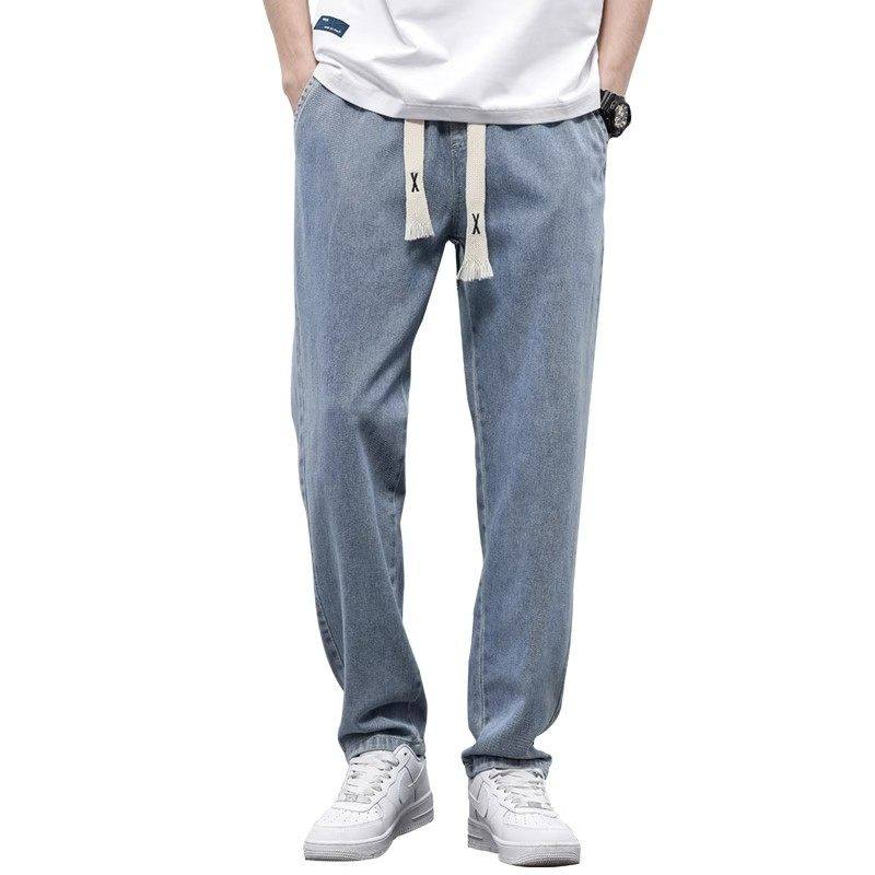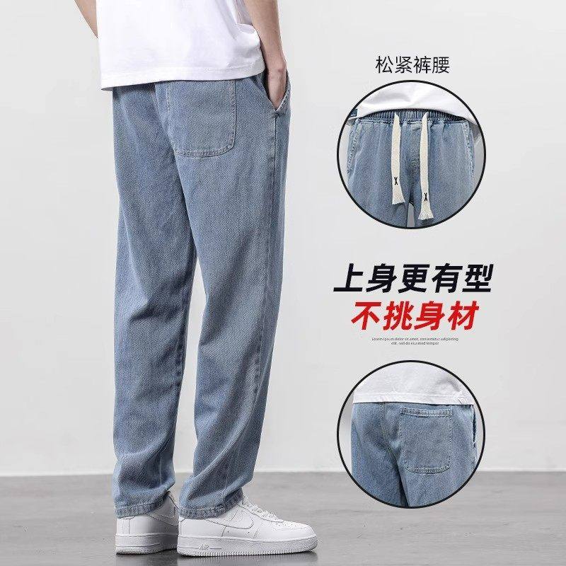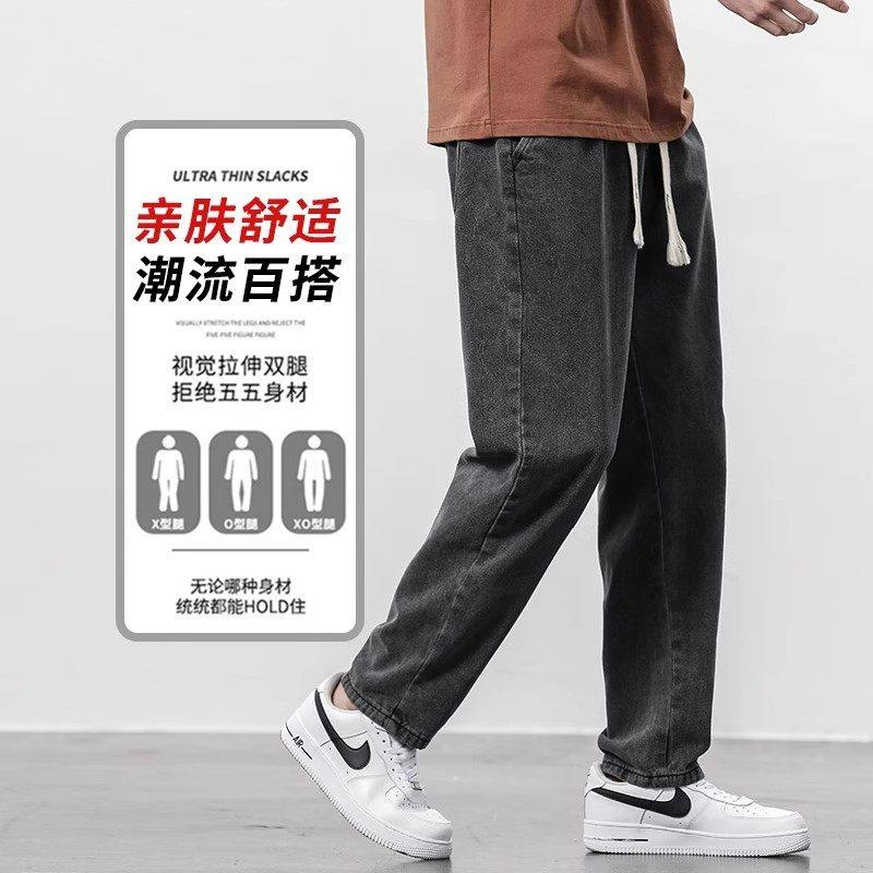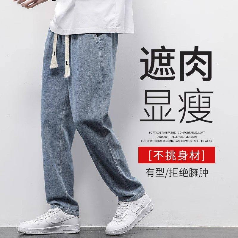 Yishion以纯牛仔裤男款秋冬宽松直筒抽绳松紧腰休闲2025新款裤子