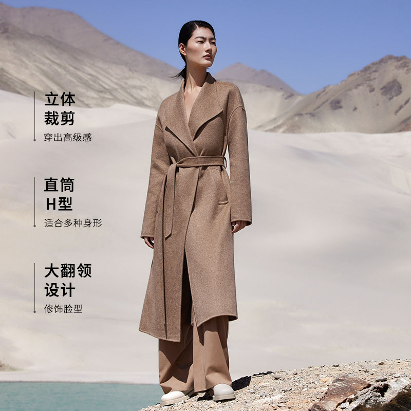 歌莉娅高端羊绒大衣冬季新款翻领气质双面呢中长款外套1ANL6E28A