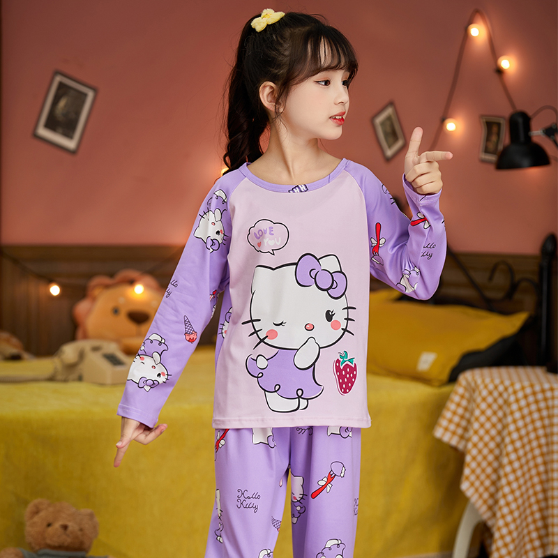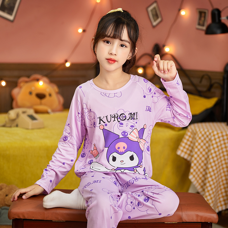 新款女童睡衣春秋季儿童女孩纯棉长袖中大童卡通库洛米家居服套装