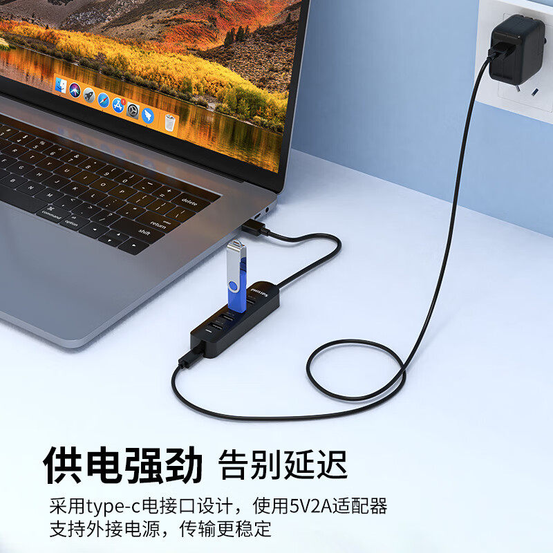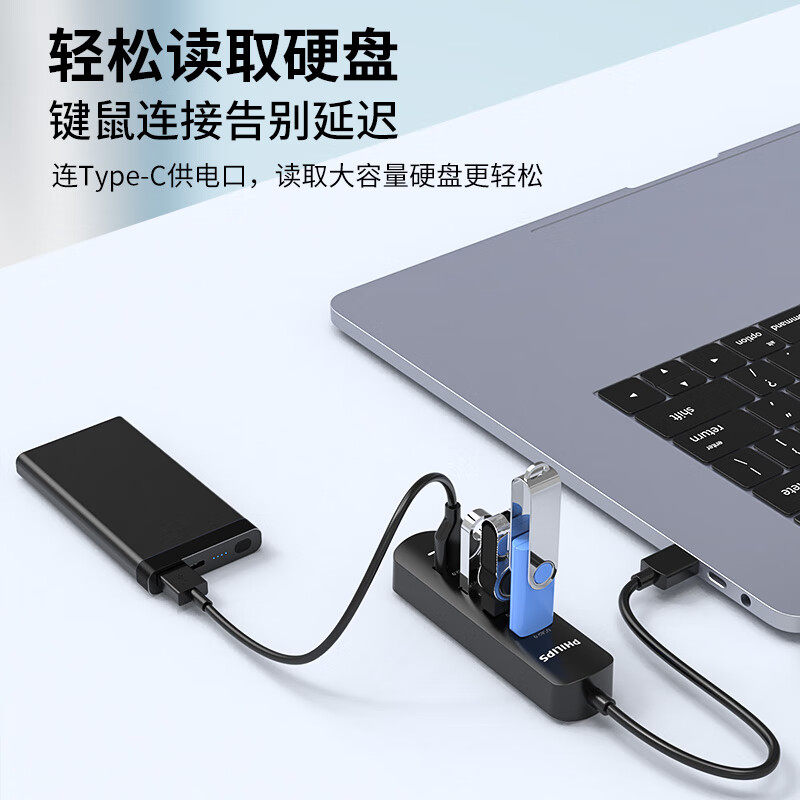 飞利浦usb3.0扩展器转换接插头多口typec笔记本电脑拓展坞多功能usd外接一拖四延长线2.0集分线器hub加长充电