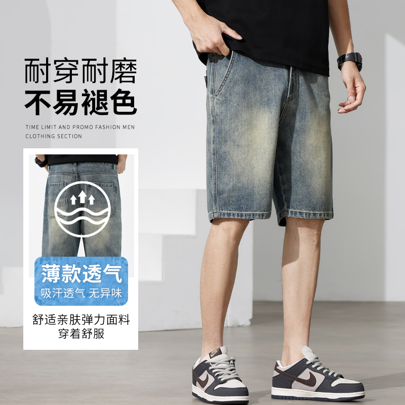 罗蒙牛仔短裤男士夏季薄款直筒宽松中裤子潮牌休闲五分裤2025新款