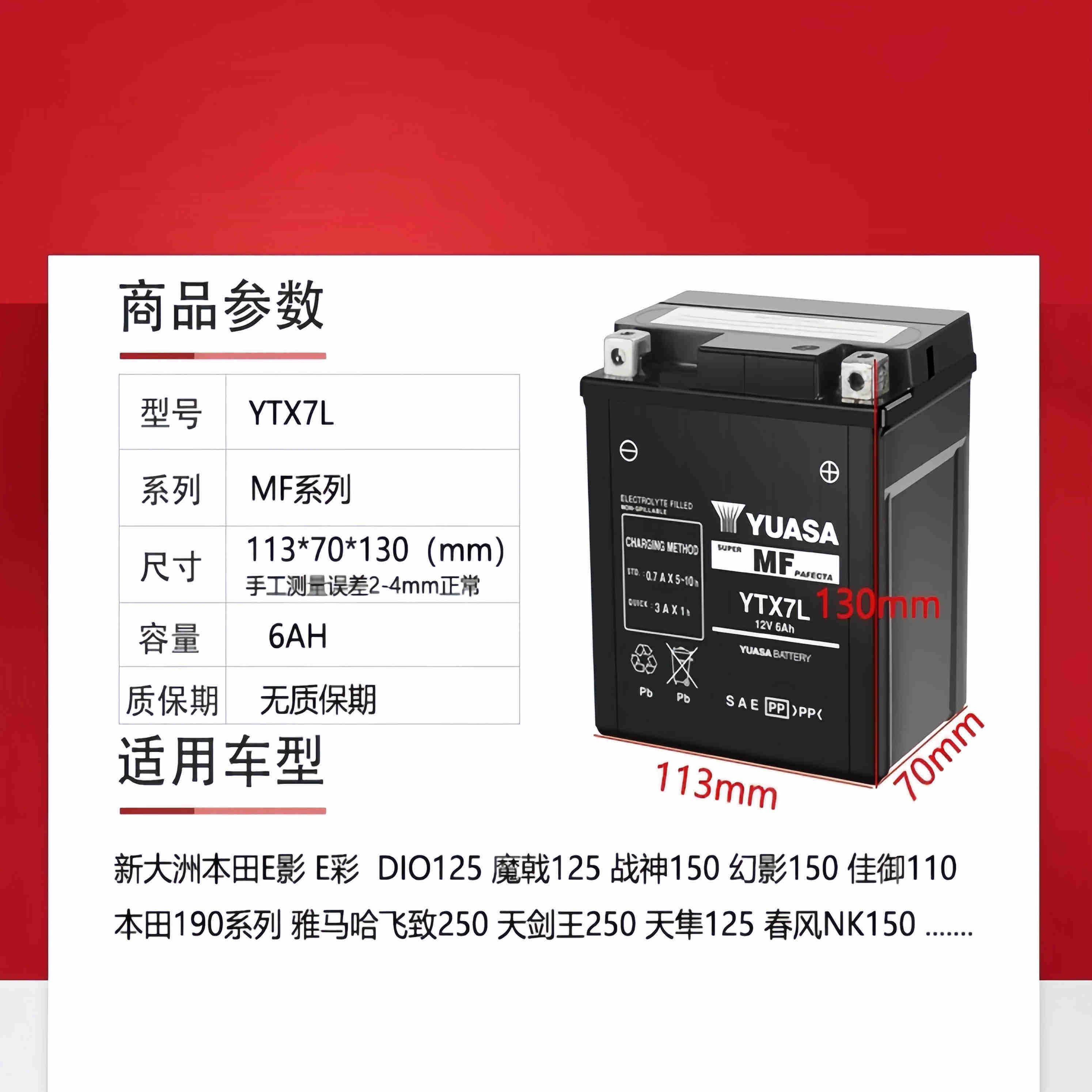 YUASA汤浅蓄电池印尼进口YTX7L摩托车电瓶正品原装12V配套免维护