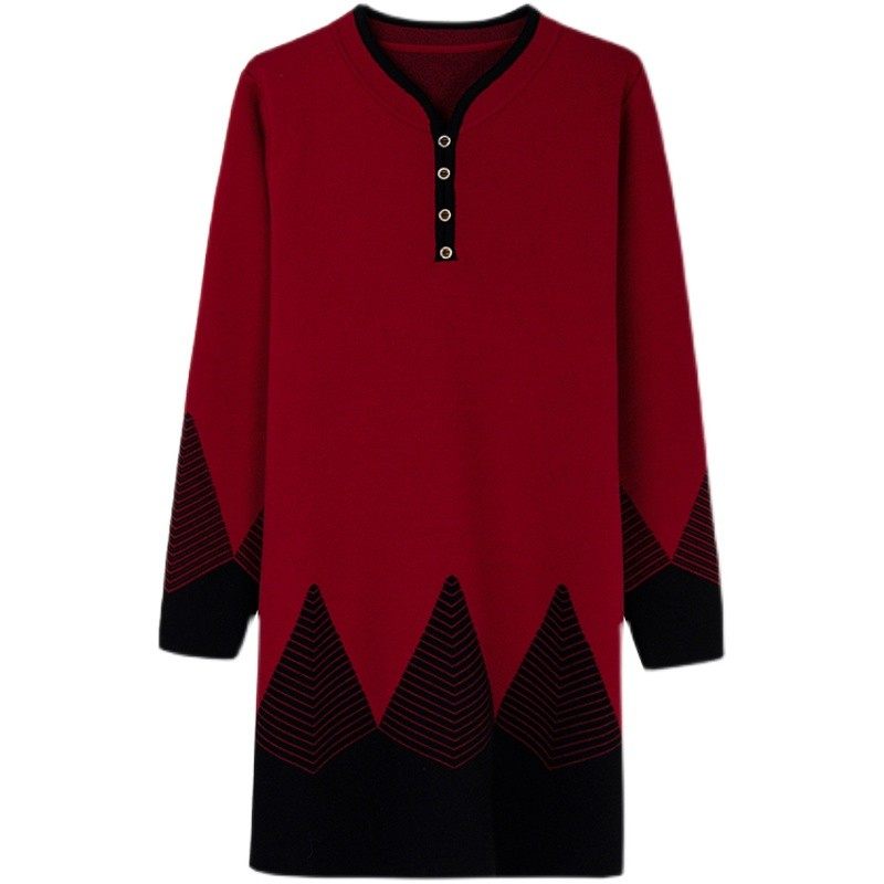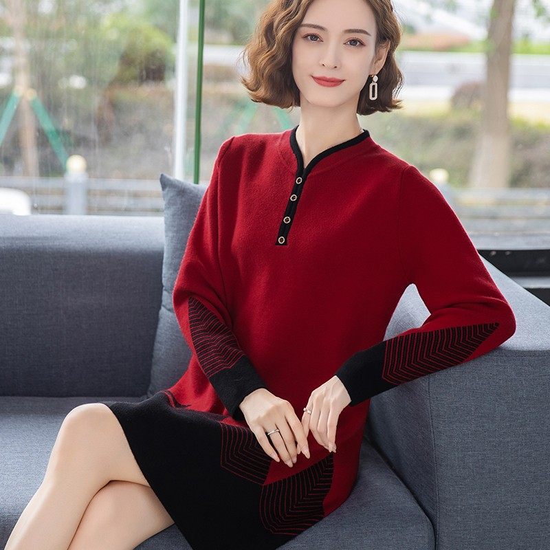 妈妈装毛衣洋气中长款加厚打底衫中老年女装秋冬装大码针织连衣裙