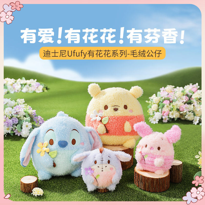 Miniso名创优品迪士尼史迪奇皮杰Ufufy有花花毛绒公仔玩偶抱靠枕