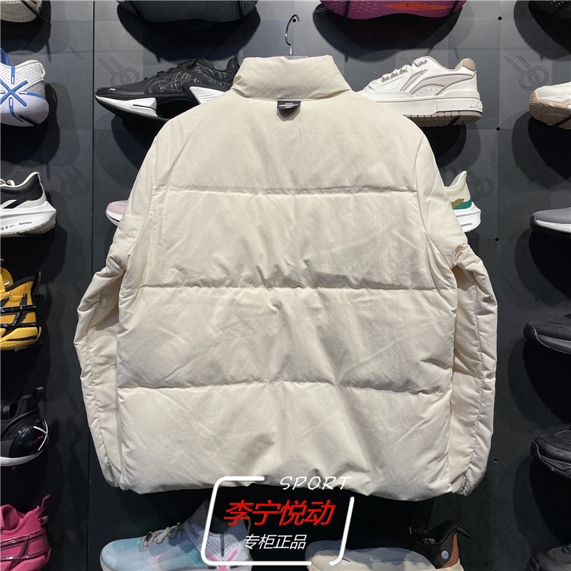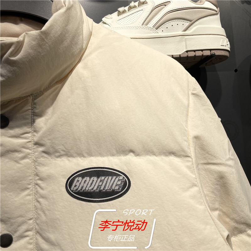李宁2024新品反伍男子防泼水宽松保暖立领80%鸭绒短羽绒服AYMU075