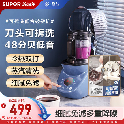 苏泊尔低音可拆洗破壁机家用加热自动豆浆机非静音多功能料理机