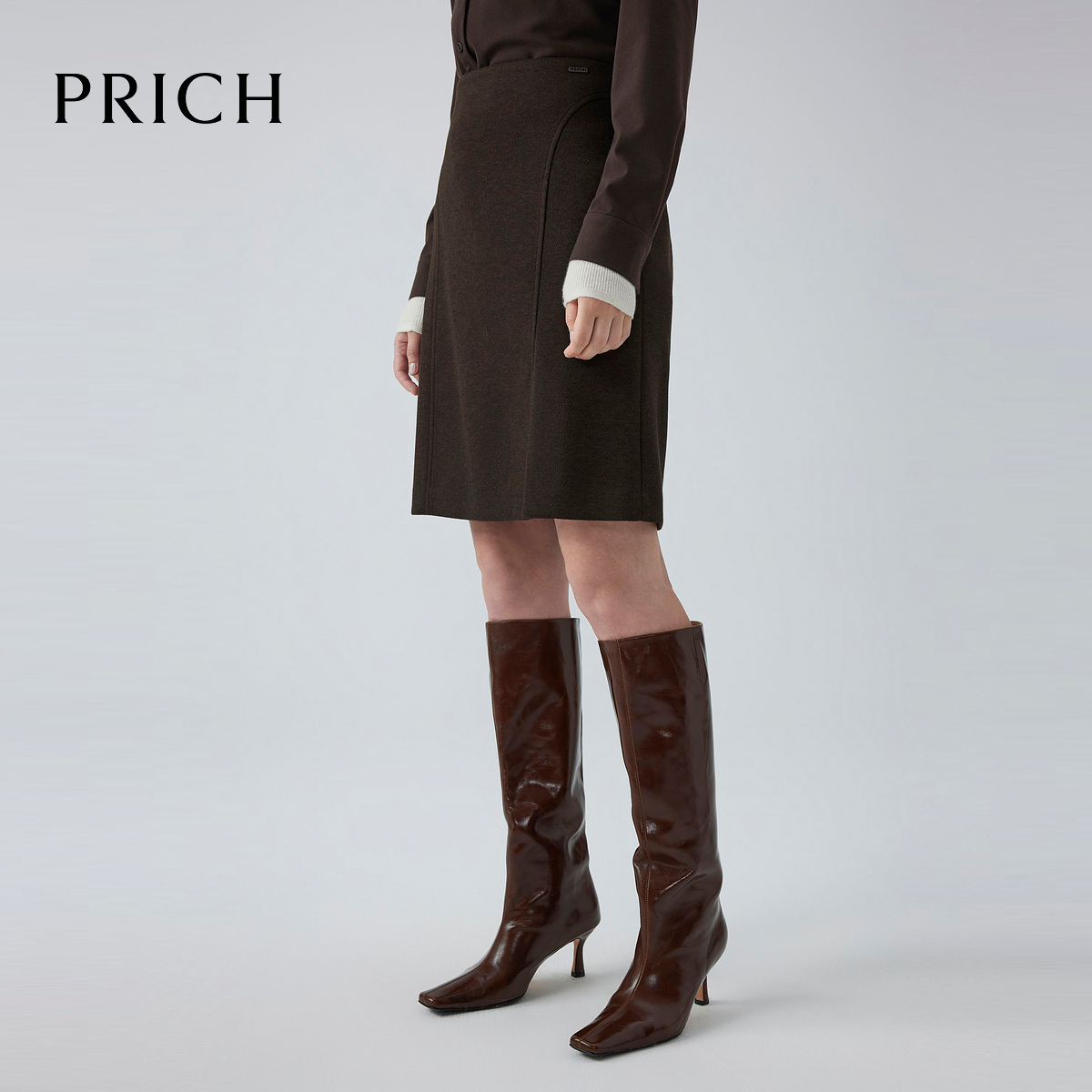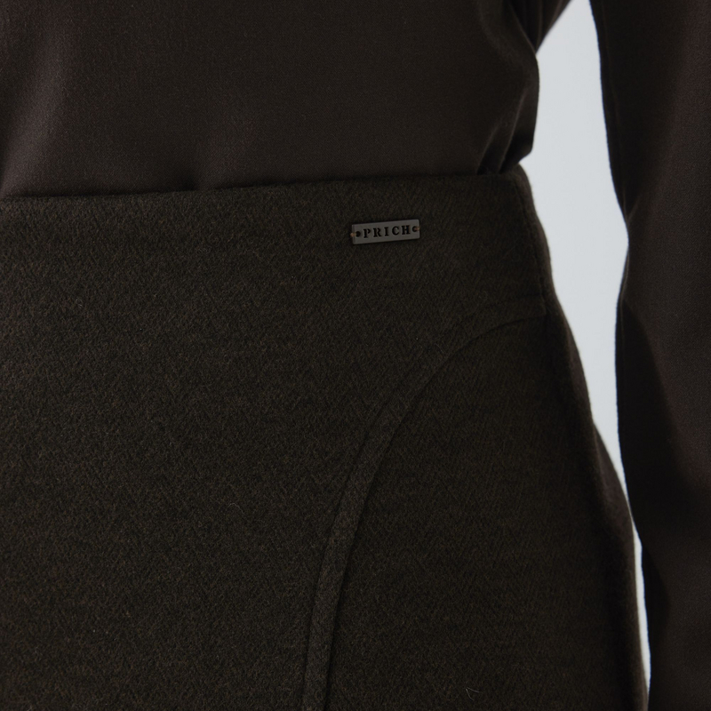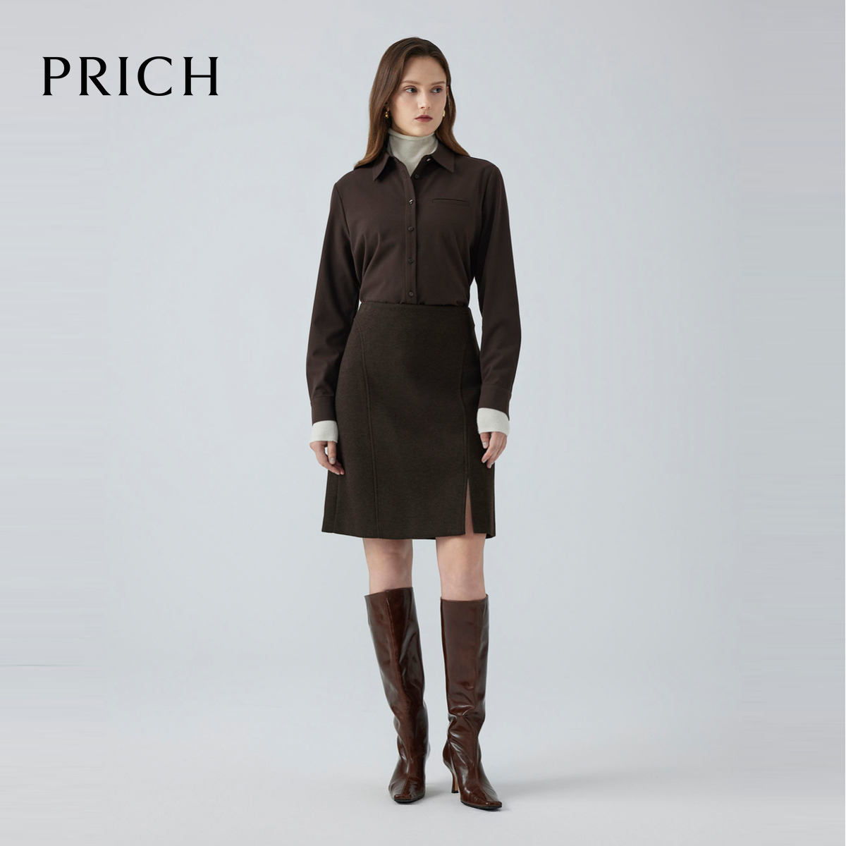 PRICH时尚复古人字纹开衩半身裙冬季新款通勤商务保暖A字裙女
