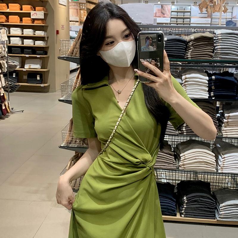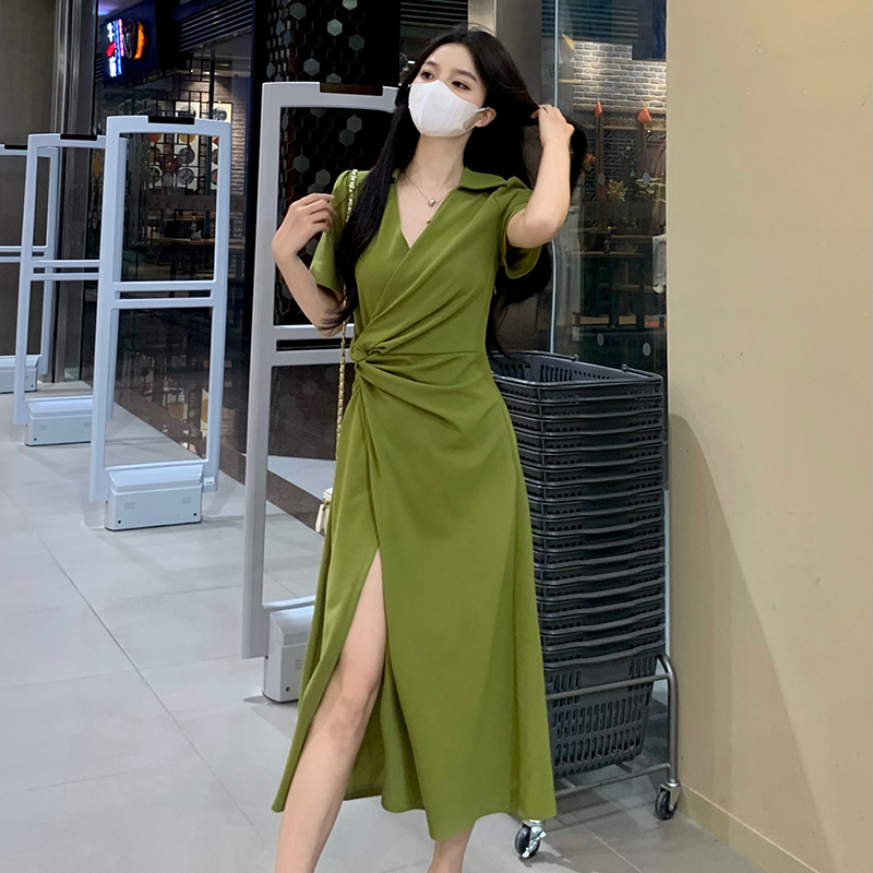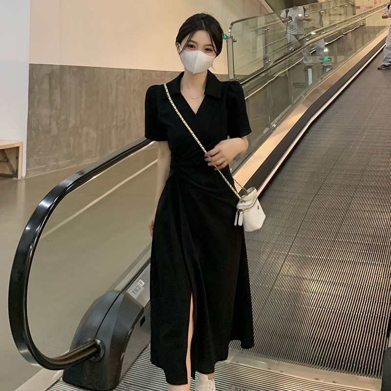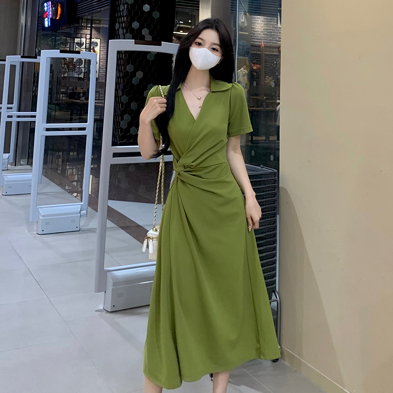 法式设计感收腰遮肚显瘦辣妈外出哺乳连衣裙夏季产后喂奶短袖长裙