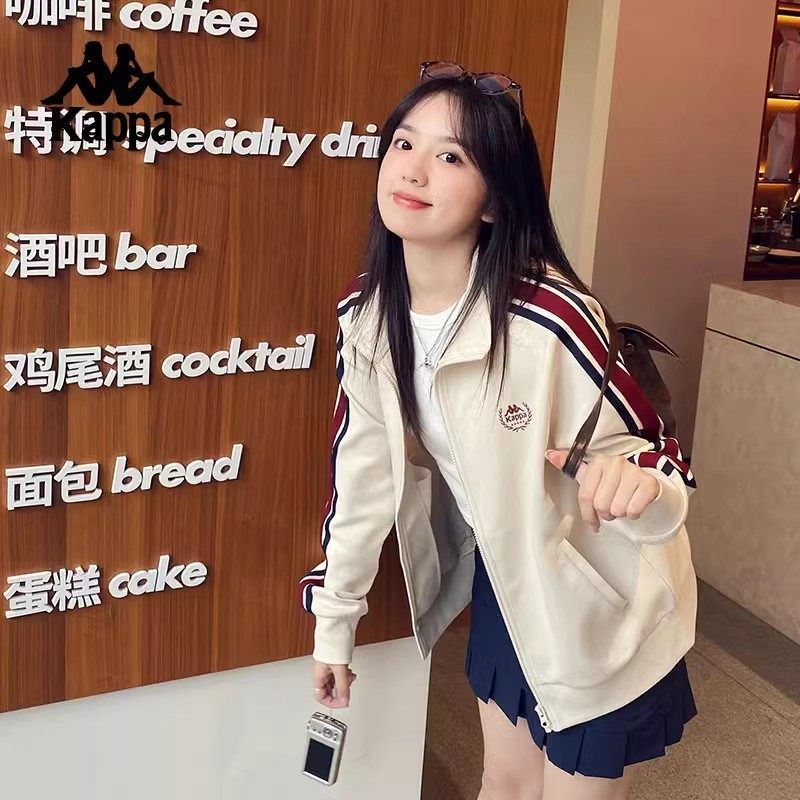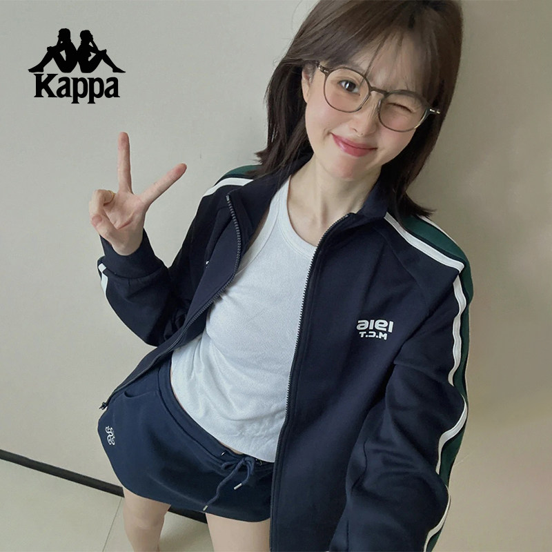 Kappa卡帕背靠背运动外套女2024新款撞色针织开衫休闲卫衣上衣潮