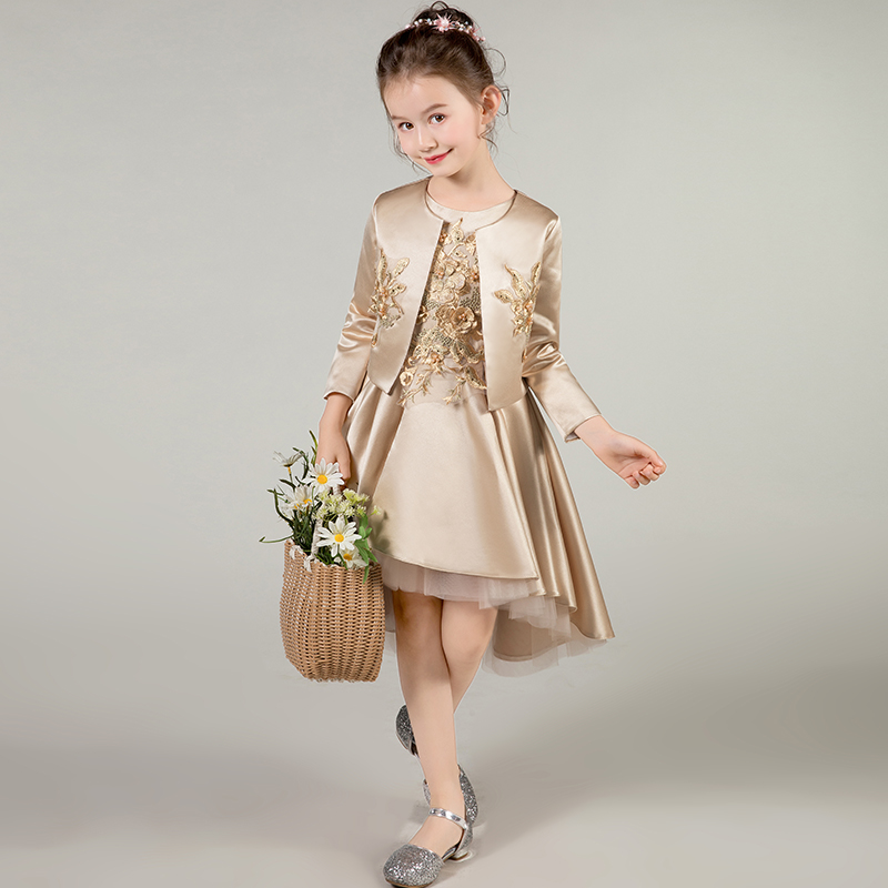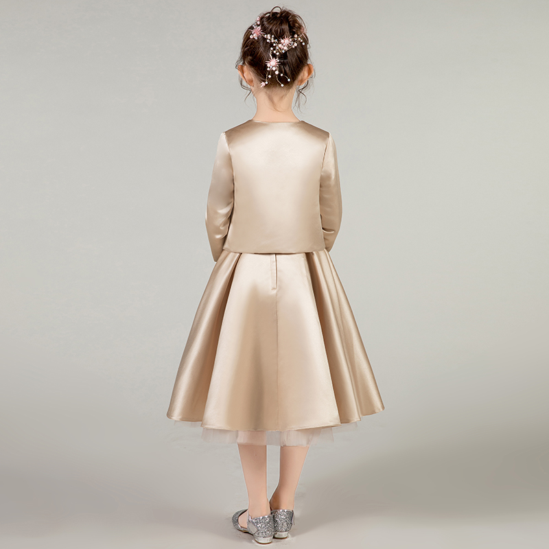 女童生日礼服缎面主持人花童高端小女孩公主裙儿童钢琴演出服演奏