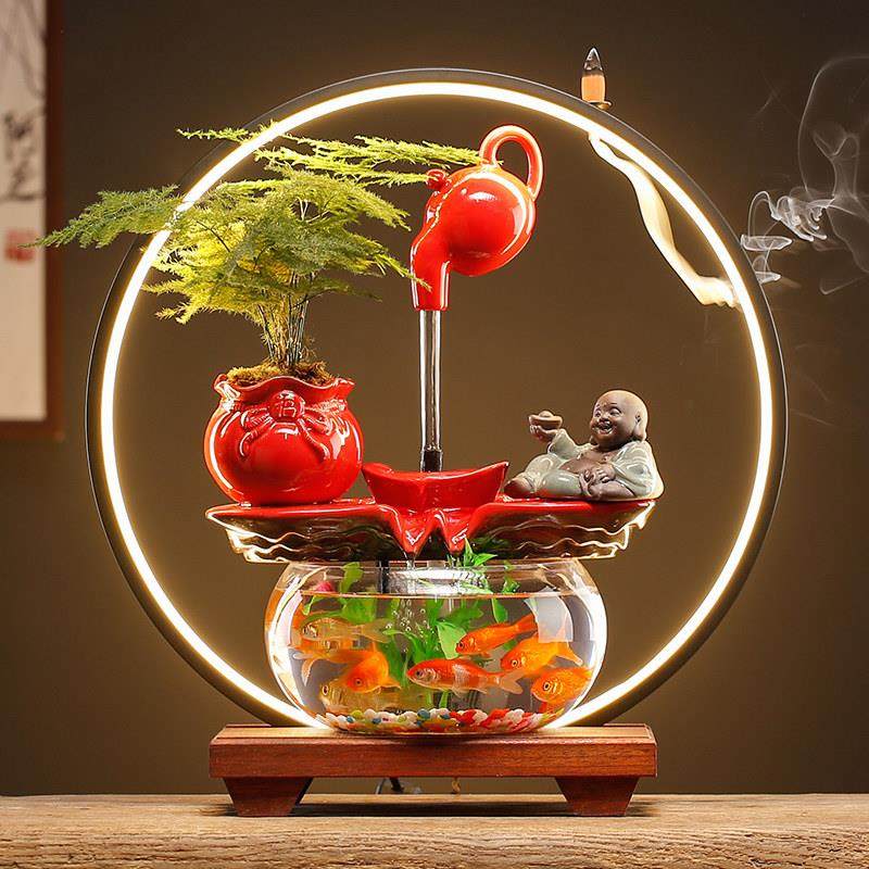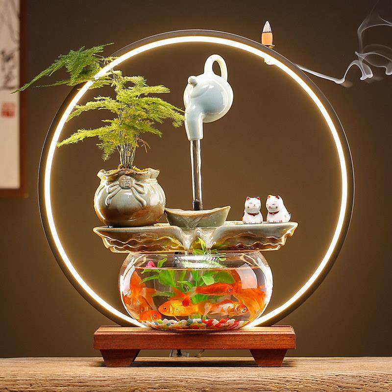 创意流水生财悬壶金鱼缸摆件循环水装饰品客厅办公室桌面招财礼品