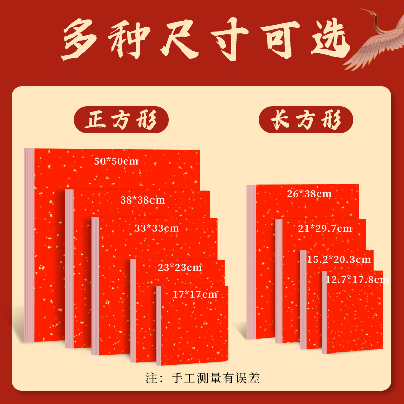 新款洒金卡纸红色宣纸书法专用加厚福字斗方作品纸国画毛笔空白手写创作纸对联小春联纸半生熟婚书书法创作纸