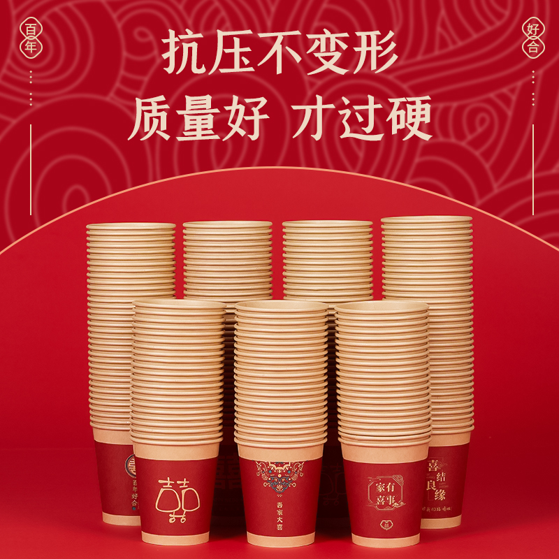 婚庆纸杯竹纤维本色一次性杯子食品级家用防烫耐高温红色结婚水杯