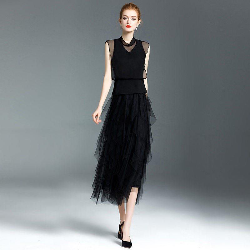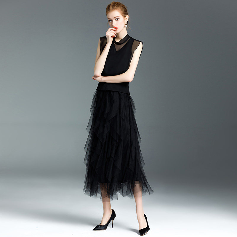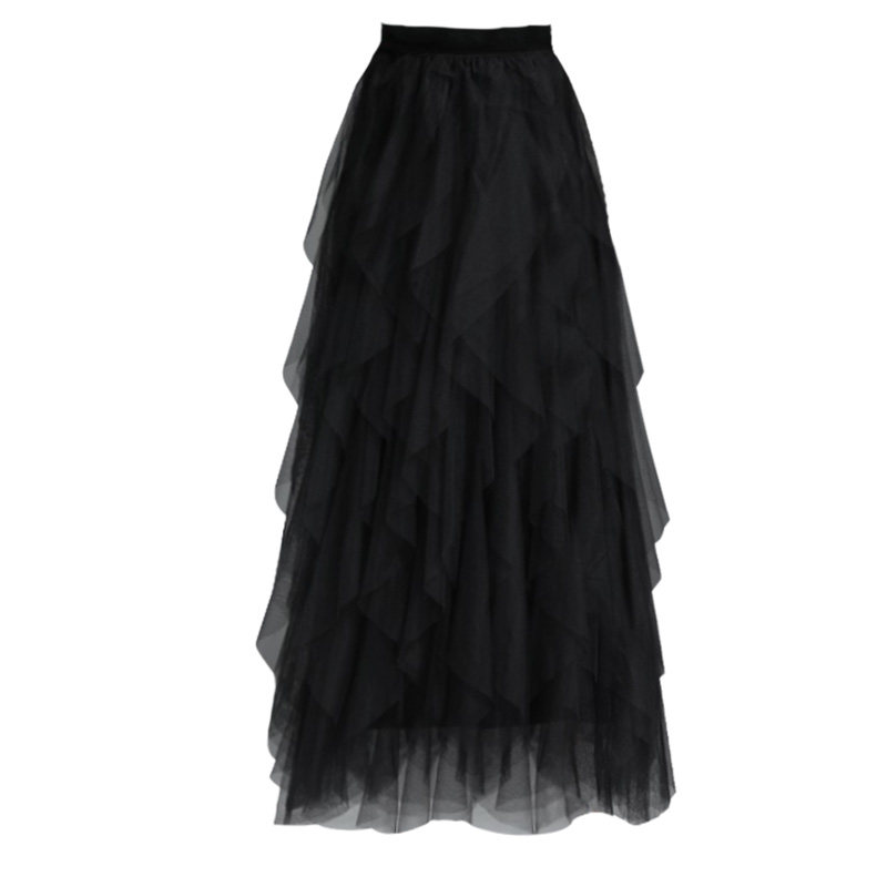 黑色纱裙半身裙女夏高腰不规则a字蓬蓬裙ins超火显瘦网纱半身长裙