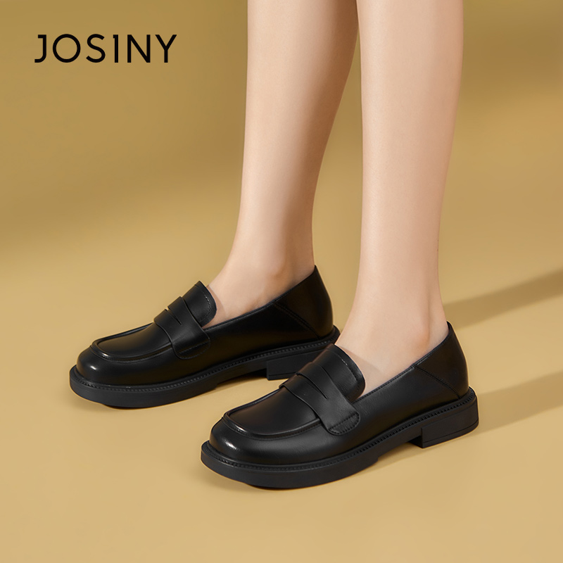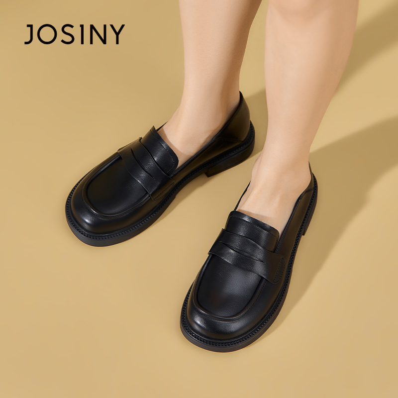 卓诗尼春秋季新款女士单鞋圆头平底浅口低帮套脚时装休闲乐福鞋