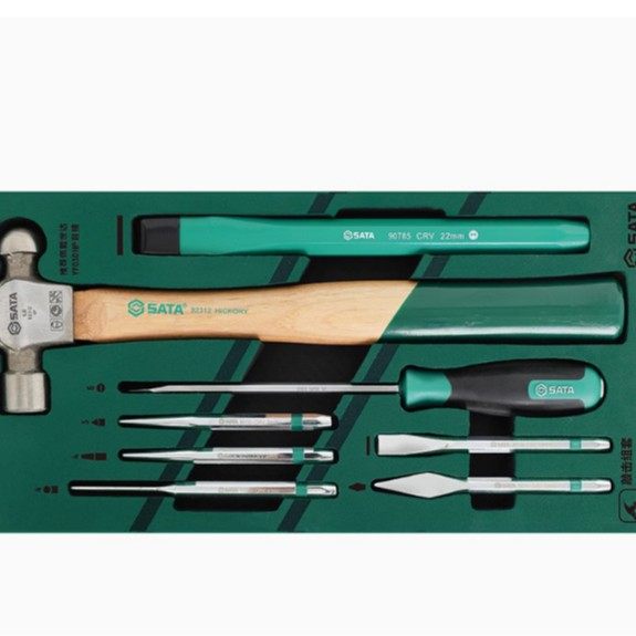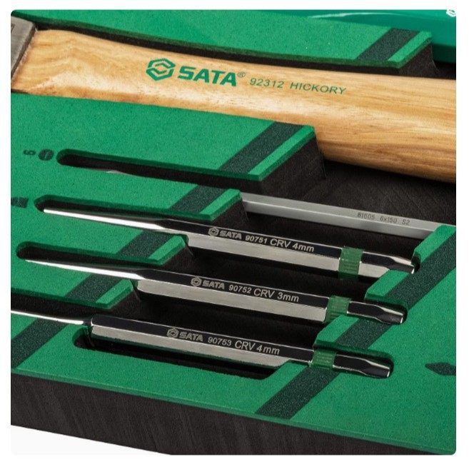 SATA世达工具8件敲击套装09952A工具托锤子扁凿圆锥圆头锤锥子