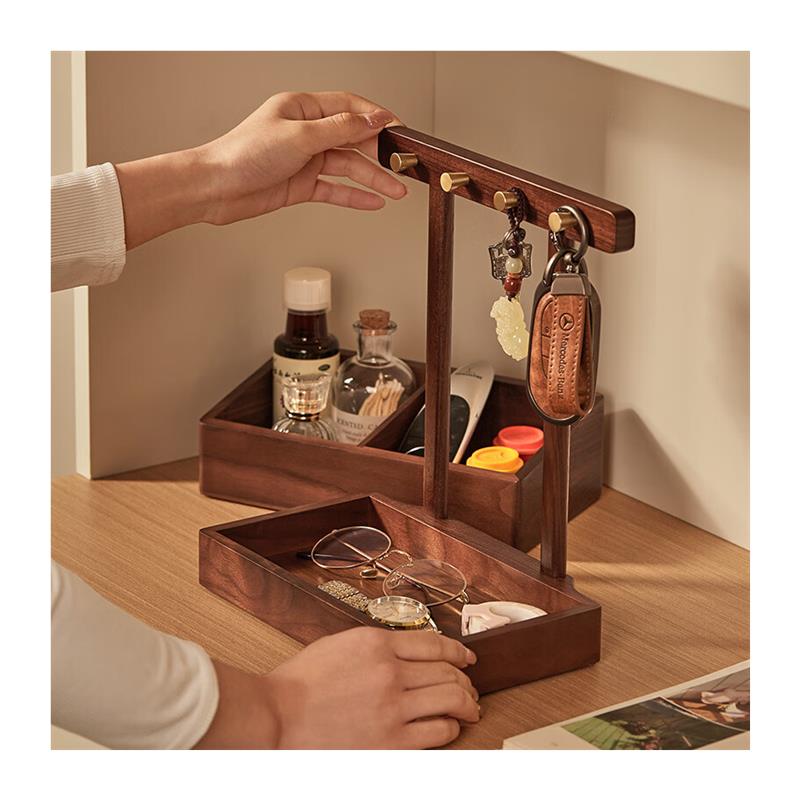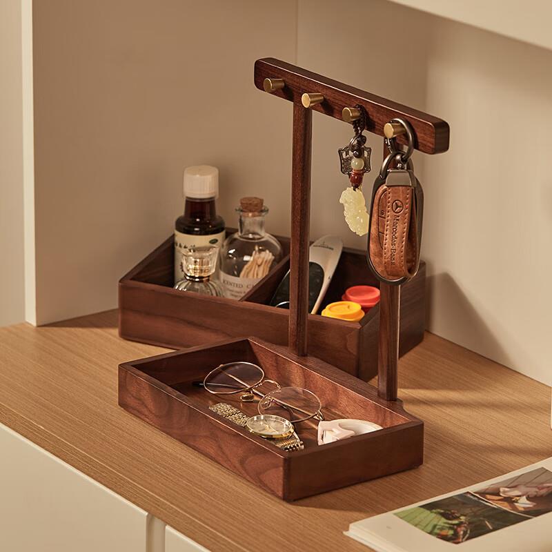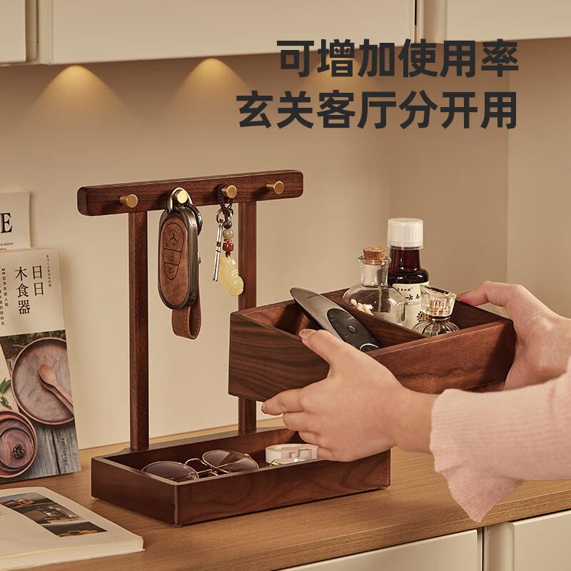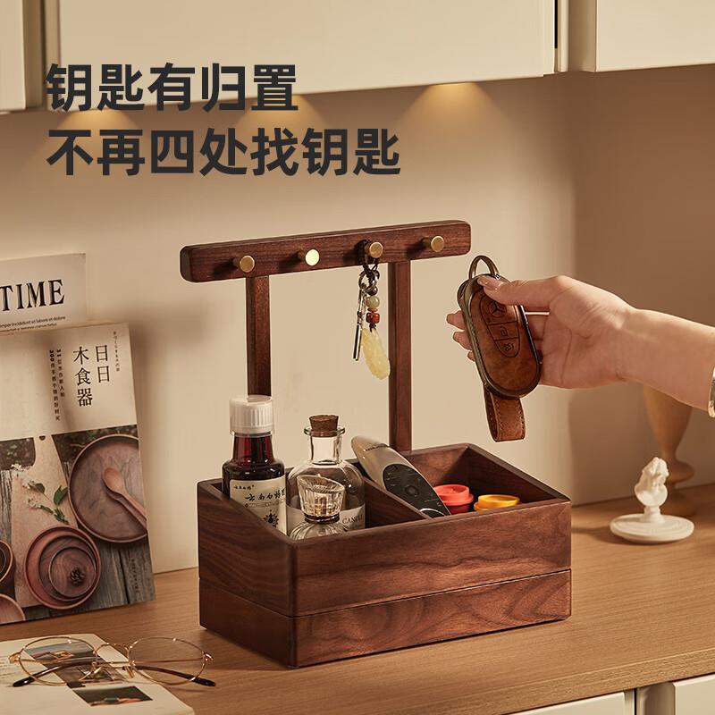 初心胡桃木玄关收纳盒钥匙挂架实木多功能收纳桌面收纳盒带收纳盒