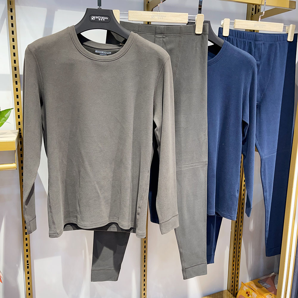 冬季双面德绒磨毛自发热男士保暖内衣套装圆领男款打底衫秋衣秋裤