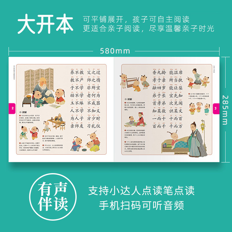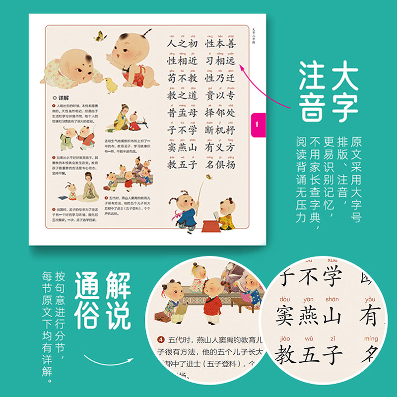 儿童绘本3一6幼儿园阅读三字经注音版千字文大字注音版千家诗弟子规中国童谣增广贤文声律启蒙论语国学经典成语故事百子图国学启蒙