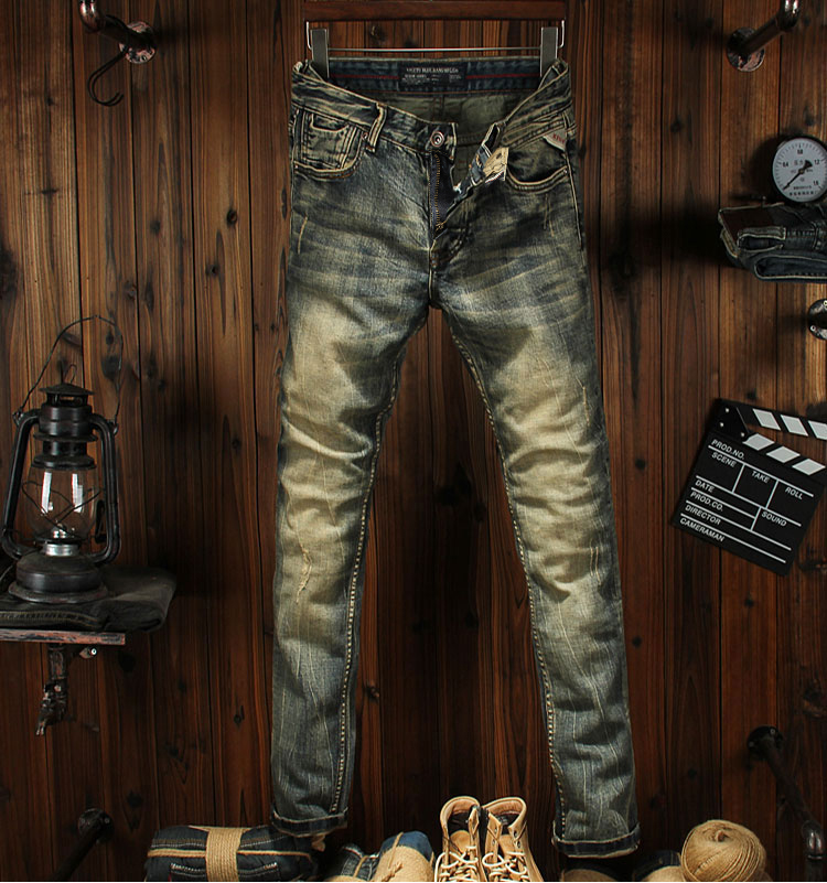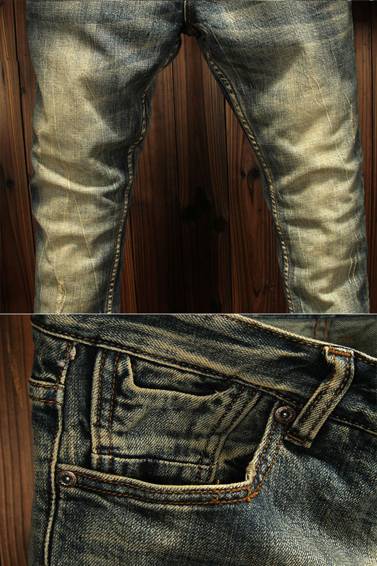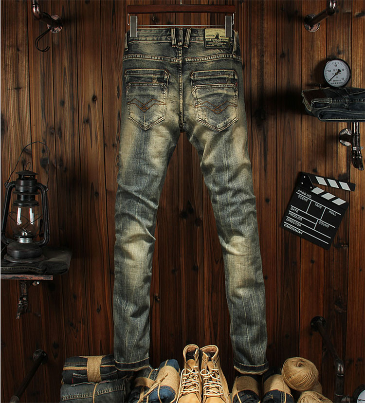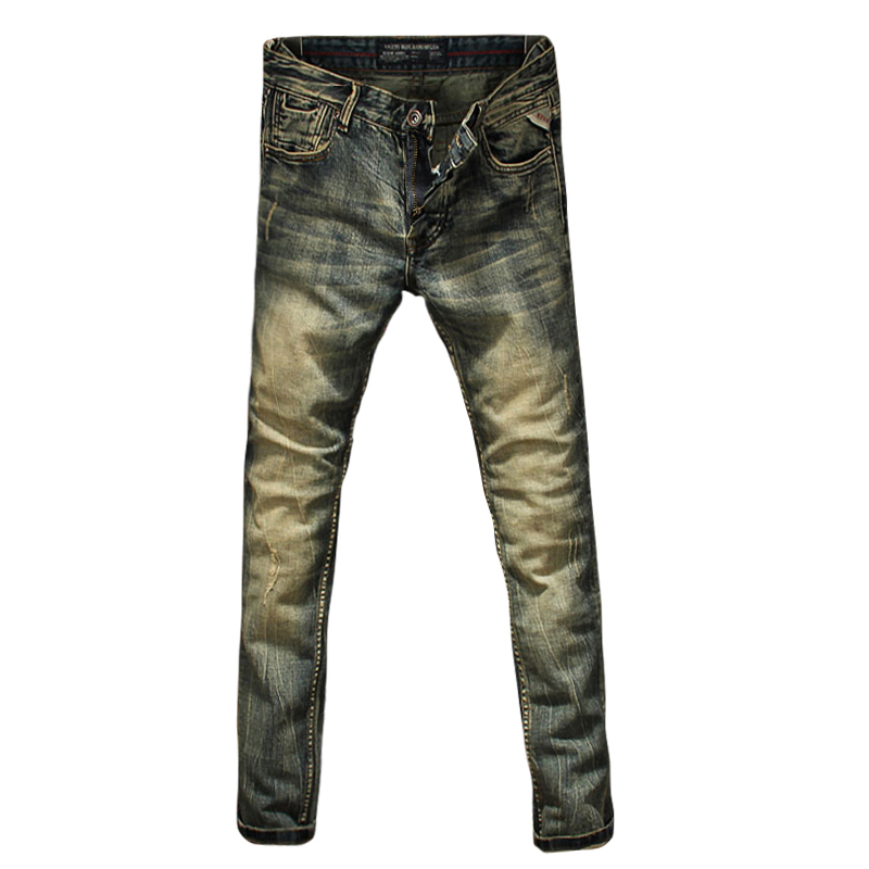 欧洲站贝克汉姆明星潮牌牛仔裤男士修身小脚做旧复古个性磨黄时尚