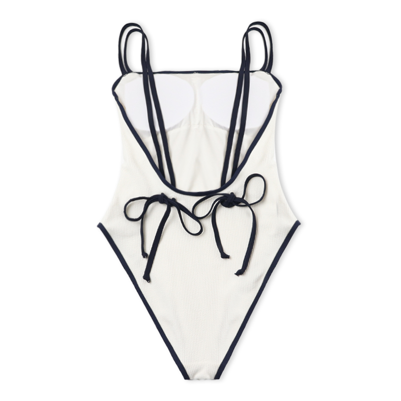 外贸原单女士连体泳衣性感露背绑带白色三角泳装极简高级风游泳衣
