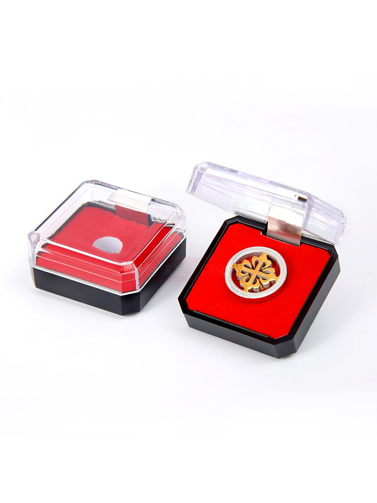 高品质亚克力徽章收纳盒定制蝴蝶扣胸针纪念章包装盒开槽印字订做
