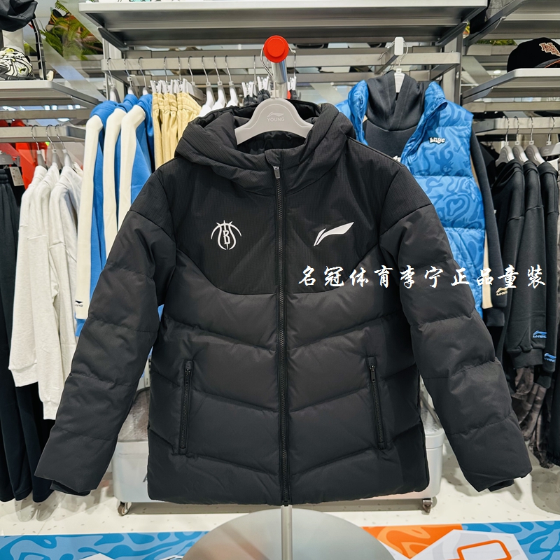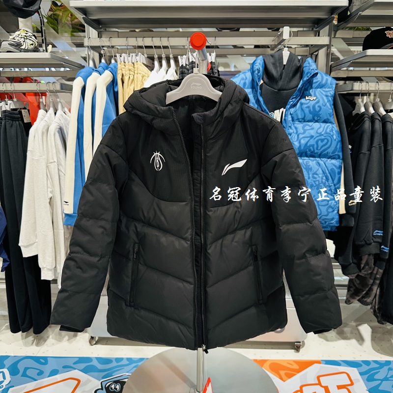 李宁童装男大童羽绒服2025冬季新品宽松中款航天保暖舒适连帽外套