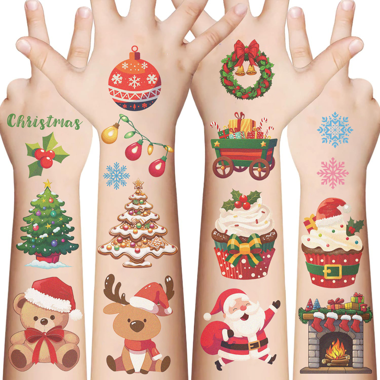 圣诞节纹身贴圣诞老人铃铛礼物