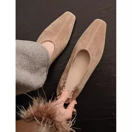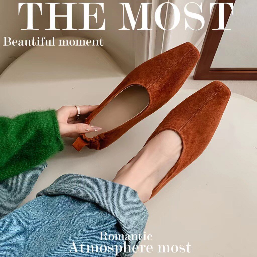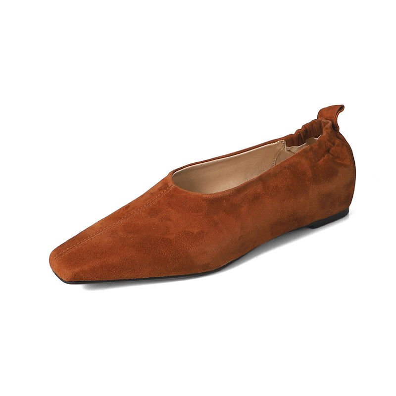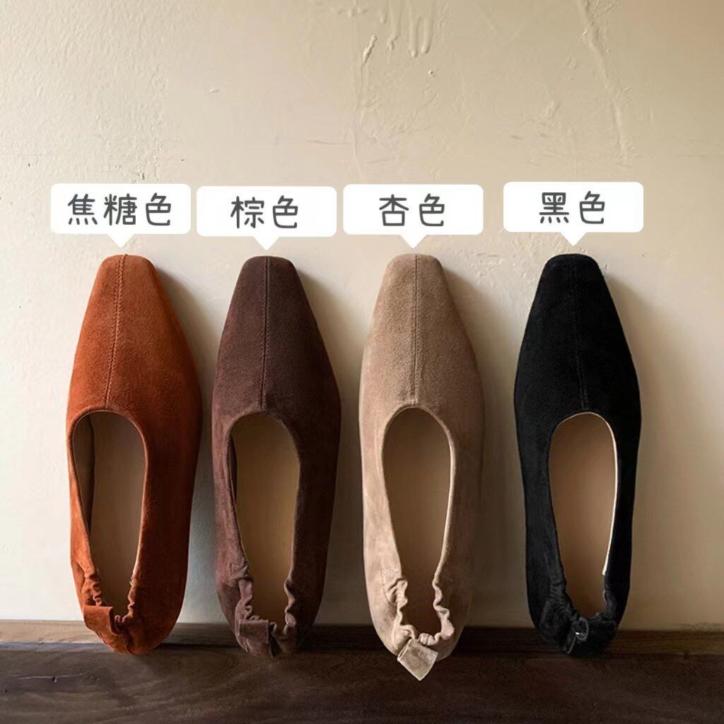 真皮法式复古淑女气质穿搭鞋平底瓢鞋开车奶奶鞋方头磨砂皮单鞋女
