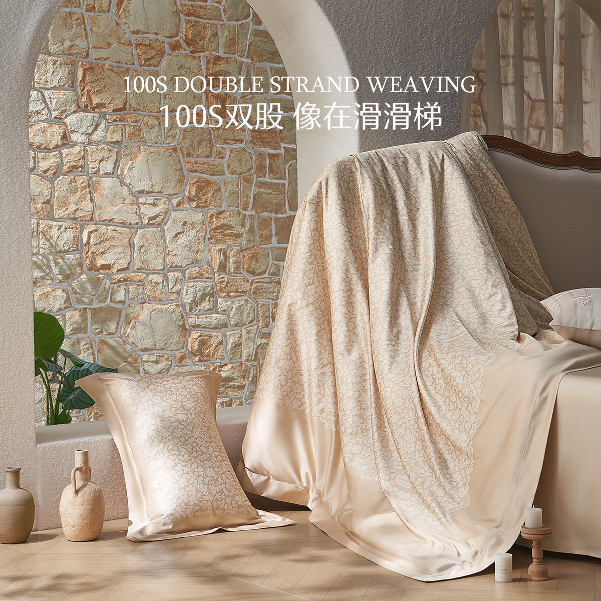 水星家纺100支双股长绒棉四件套全棉贡缎轻奢套件高端床单被子套