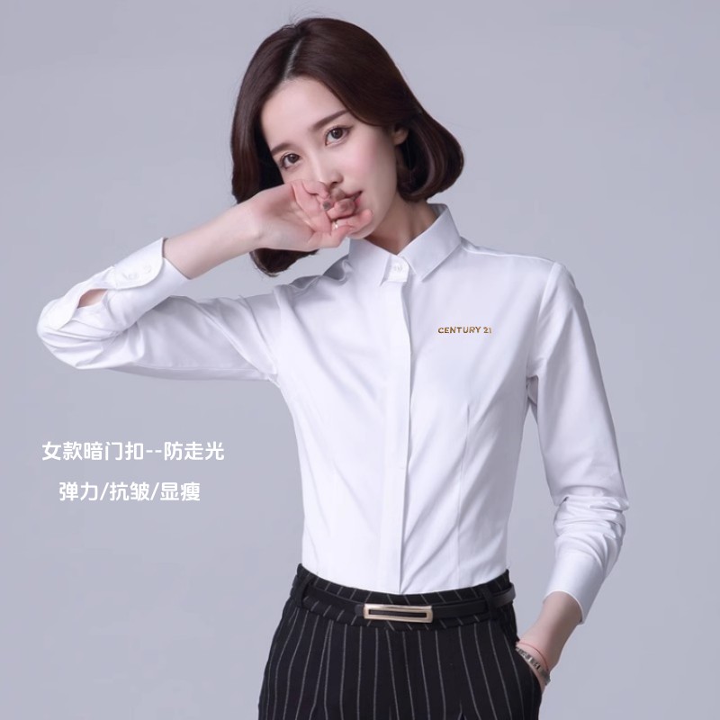 新款21世纪不动产制服男女长短袖白色衬衫C21弹力竹纤维免烫衬衣