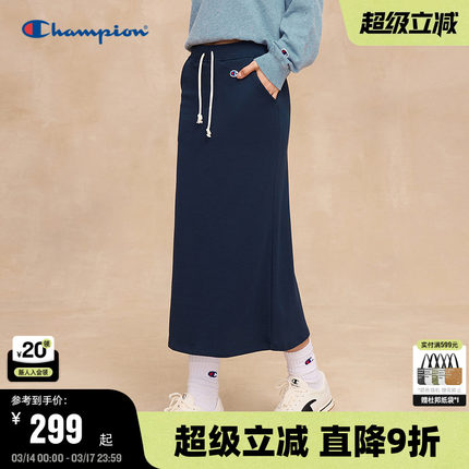 Champion冠军半身裙女2026春季新款刺绣休闲红色抽绳款韩系长裙夏
