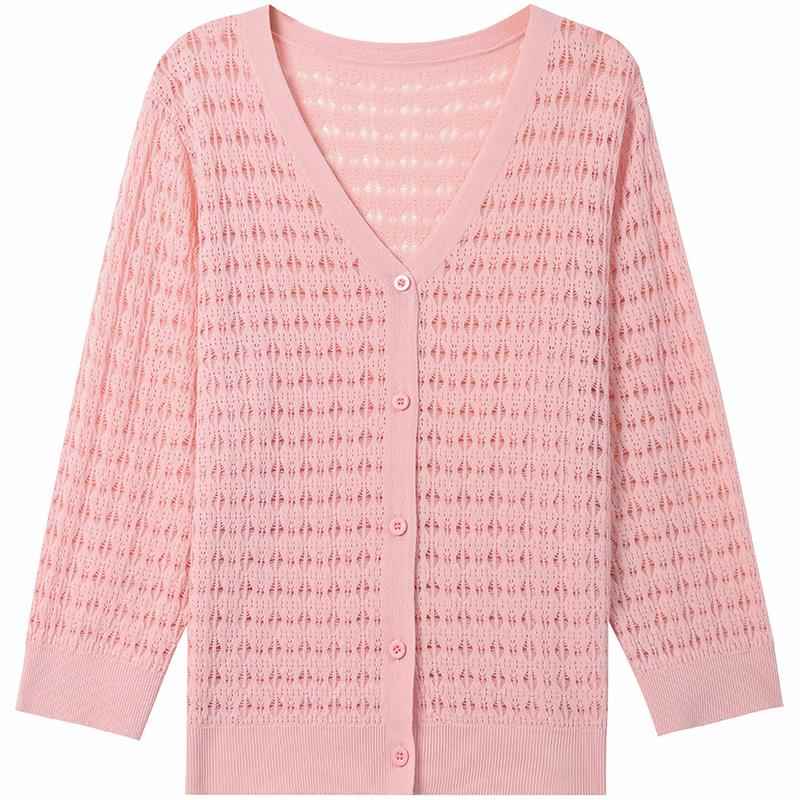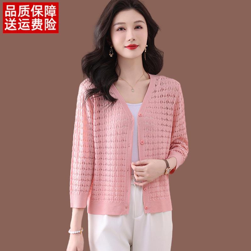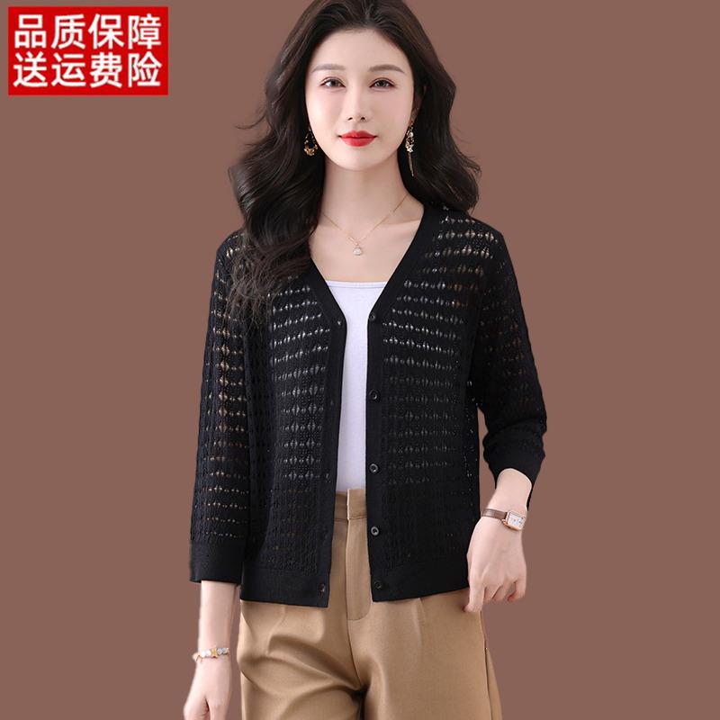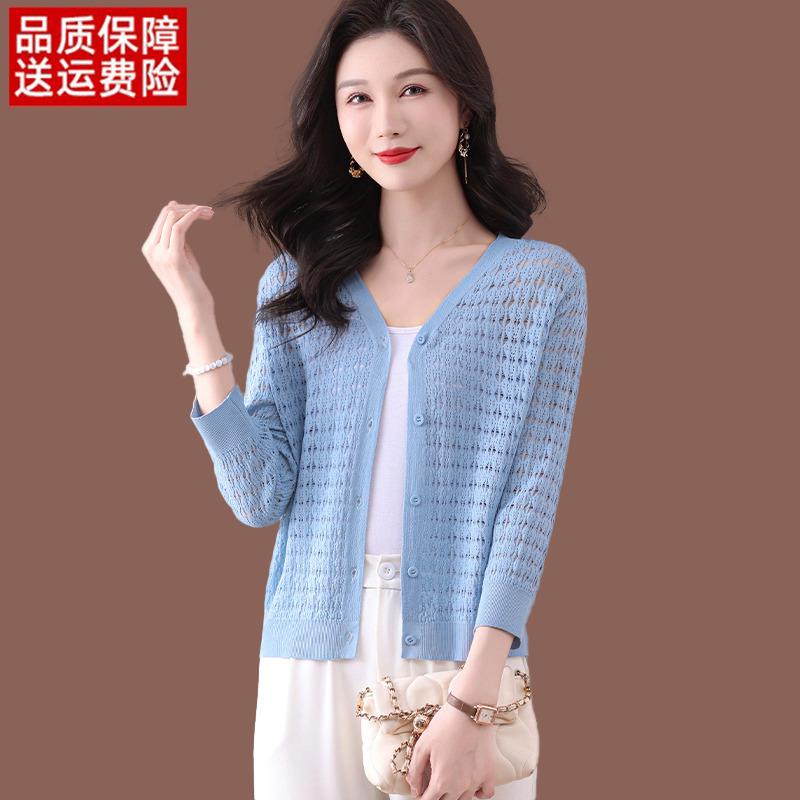 真丝v领针织开衫女薄款夏季新款宽松镂空短款配裙披肩外搭防晒衣