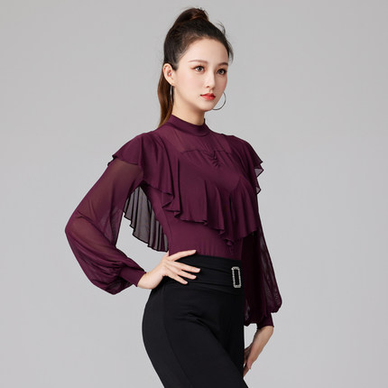 拉丁舞上衣2025新款女长短袖春秋季摩登舞国标交谊练功广场舞蹈服