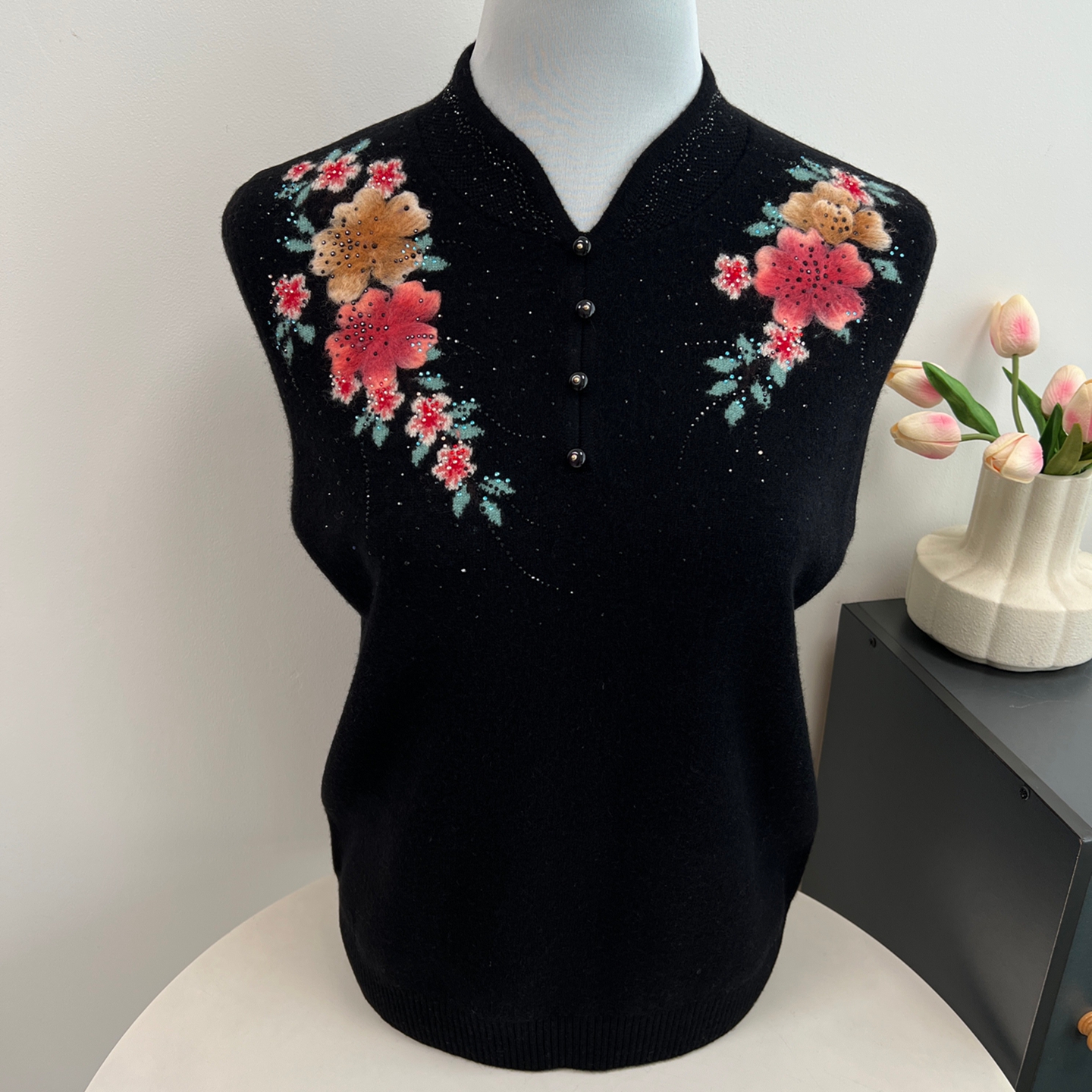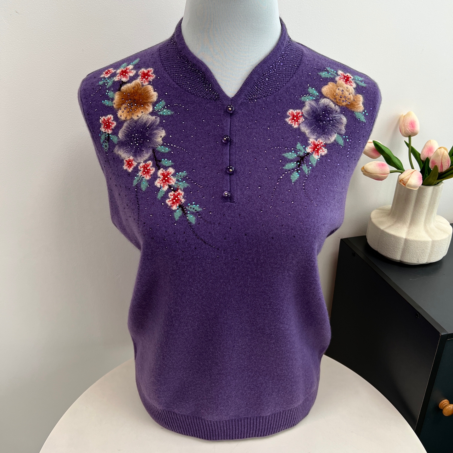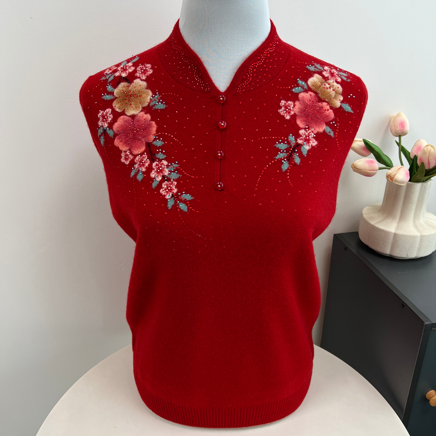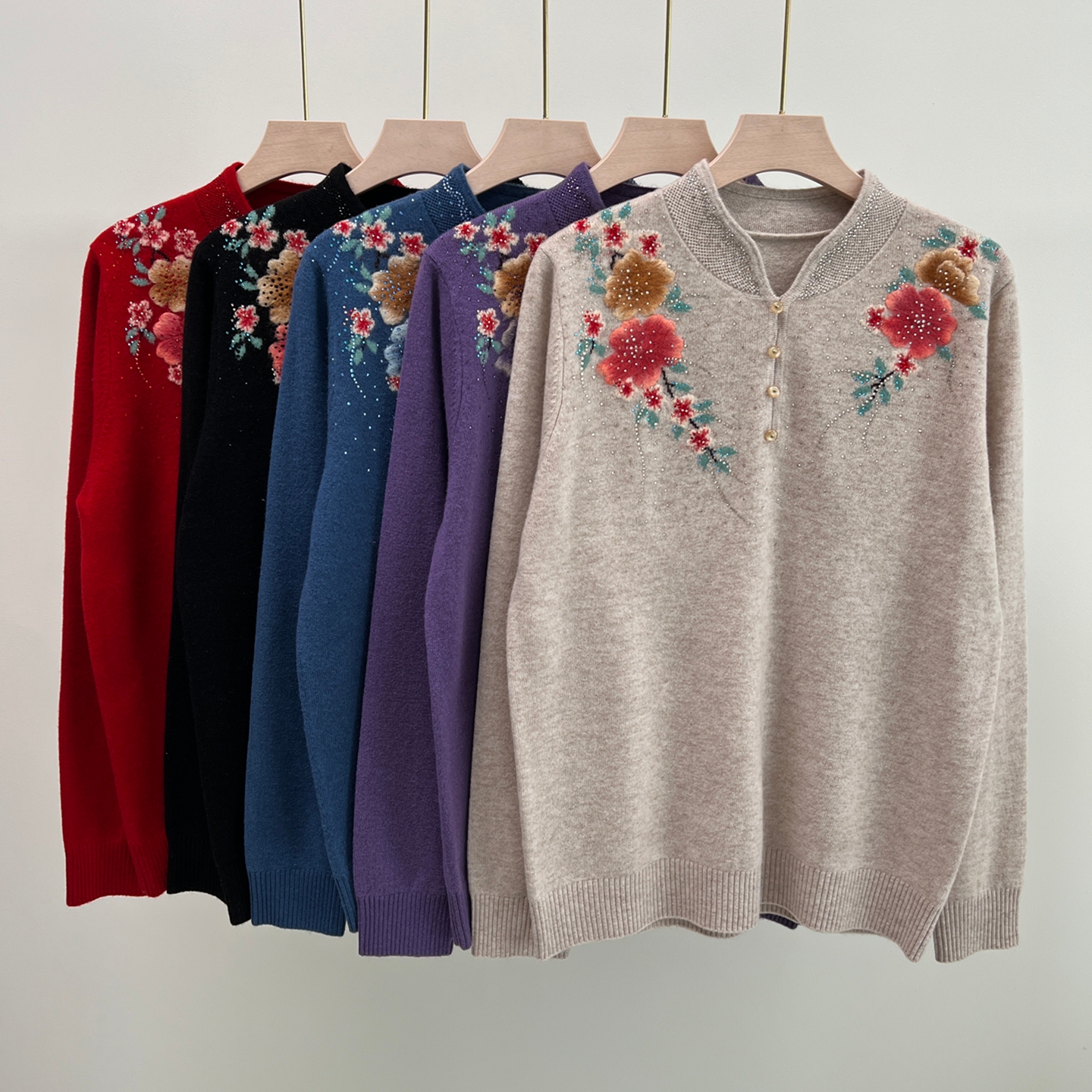 奶奶装秋冬100%纯羊毛衫女毛衣新款保暖打底衫洋气妈妈款绣花上衣
