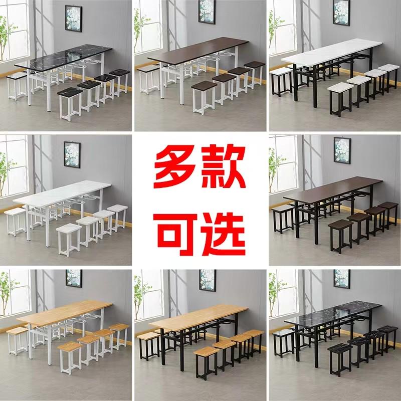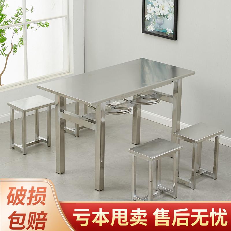 不锈钢挂凳食堂桌椅4人6人位长方形桌子学校工厂员工快餐桌椅组合